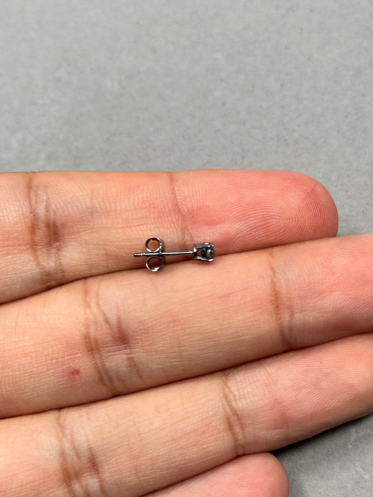 0.09-0.12 Ct Black Diamond Men’s Stud Earring – Round Rose Cut 2.5-3mm AA Quality in 14K Blackened White Gold, Single Push Back Earring