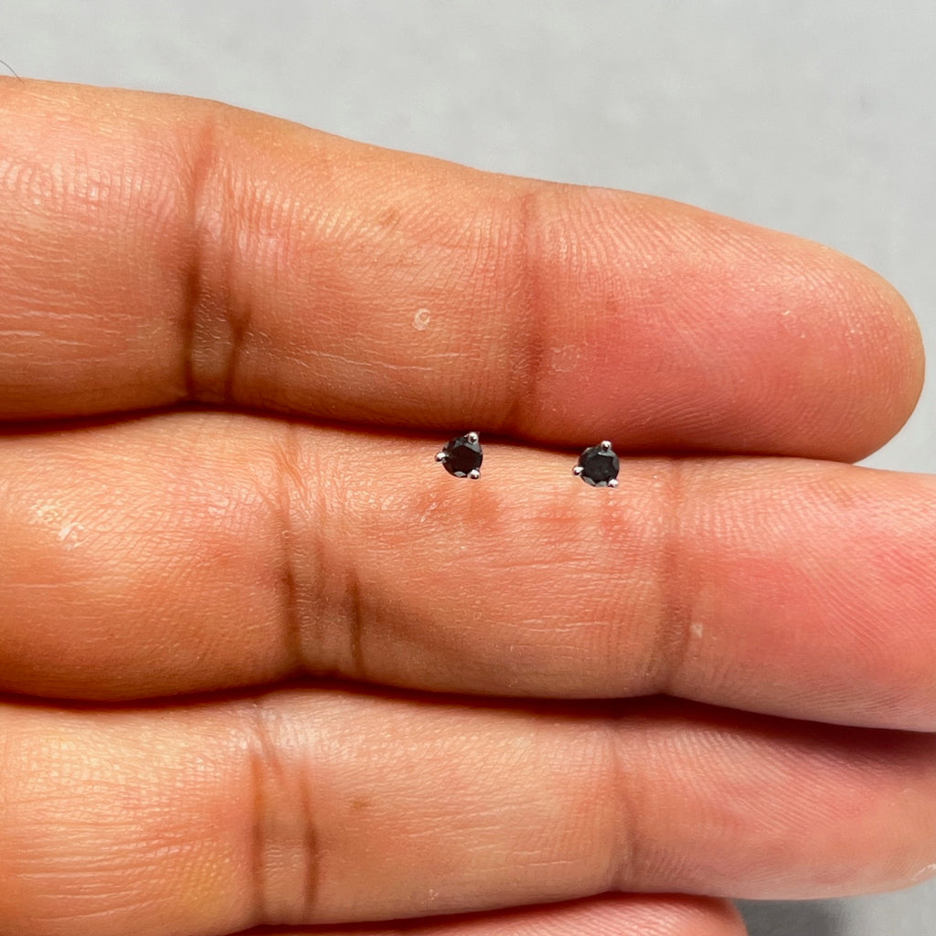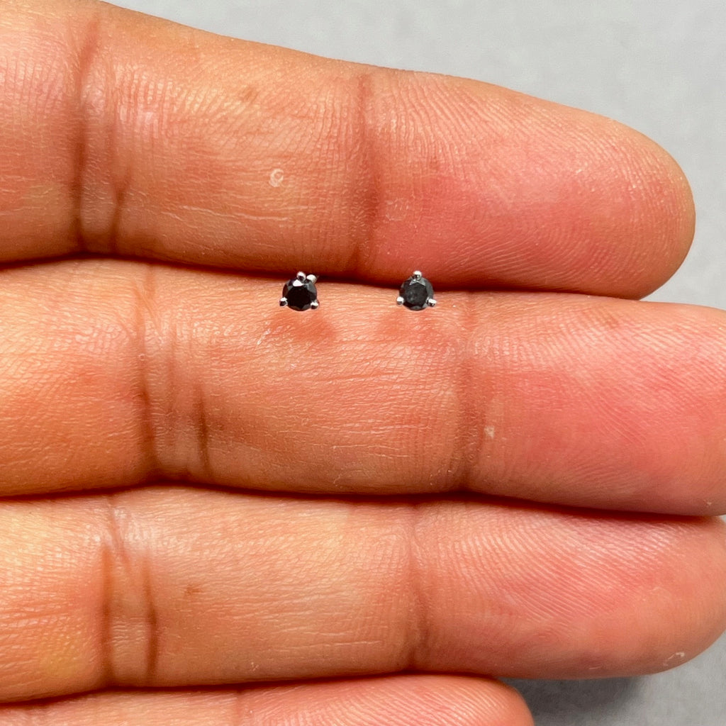 0.09 Ct Black Diamond Stud Earrings 18K White Gold • AAA Round 2.5-3mm Black Diamond Solitaire Earrings • Dainty Fine Jewelry Gift for Her
