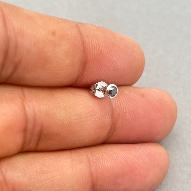 0.11-0.13 Ct Black Diamond Men’s Stud Earring in 18K White Gold | Round Solitaire Bezel Set Black Diamond Earring for Anniversary Gift