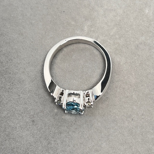 0.20 Ct Diamond And 1.70 Ct Oval Aquamarine Three Stone Engagement Ring in 18K White Gold, Ring, Size 7, Aquamarine & Diamond Jewelry