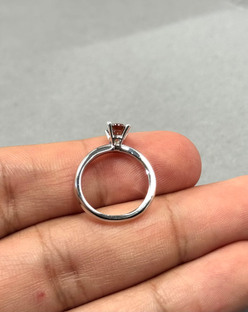 This enchanting Brown Diamond Solitaire Ring is crafted in luxurious 14K White Gold with rhodium finish, featuring an oval-shaped natural brown diamond of 0.48–0.55 carats. The solitaire diamond is securely held in a classic prong setting, radiating warm, earthy elegance with its rich brown hue and SI clarity. With a refined 2.2 mm band width, this ring embodies both timeless style and modern sophistication, making it a perfect choice for engagements, anniversaries, or a treasured everyday jewel.