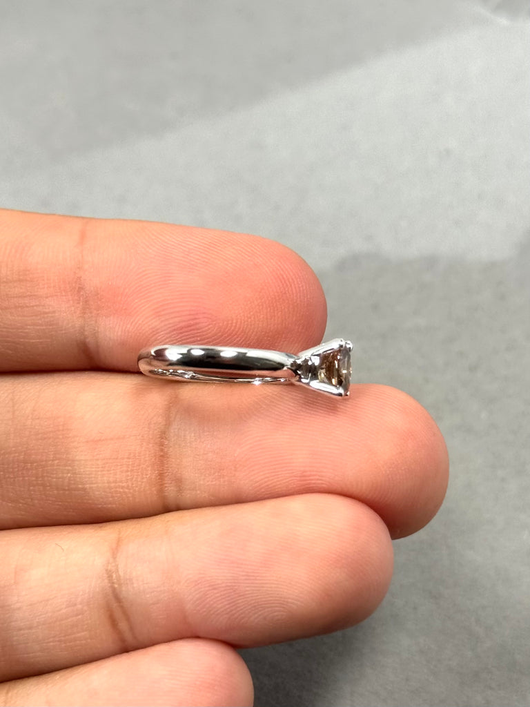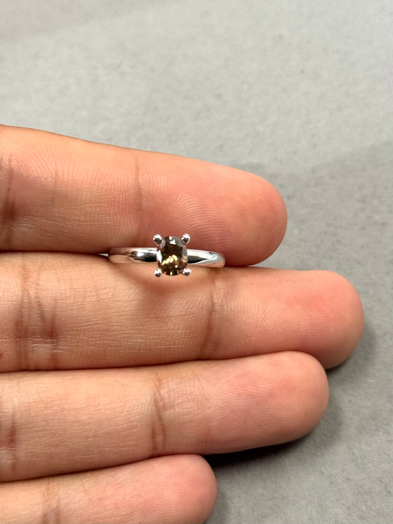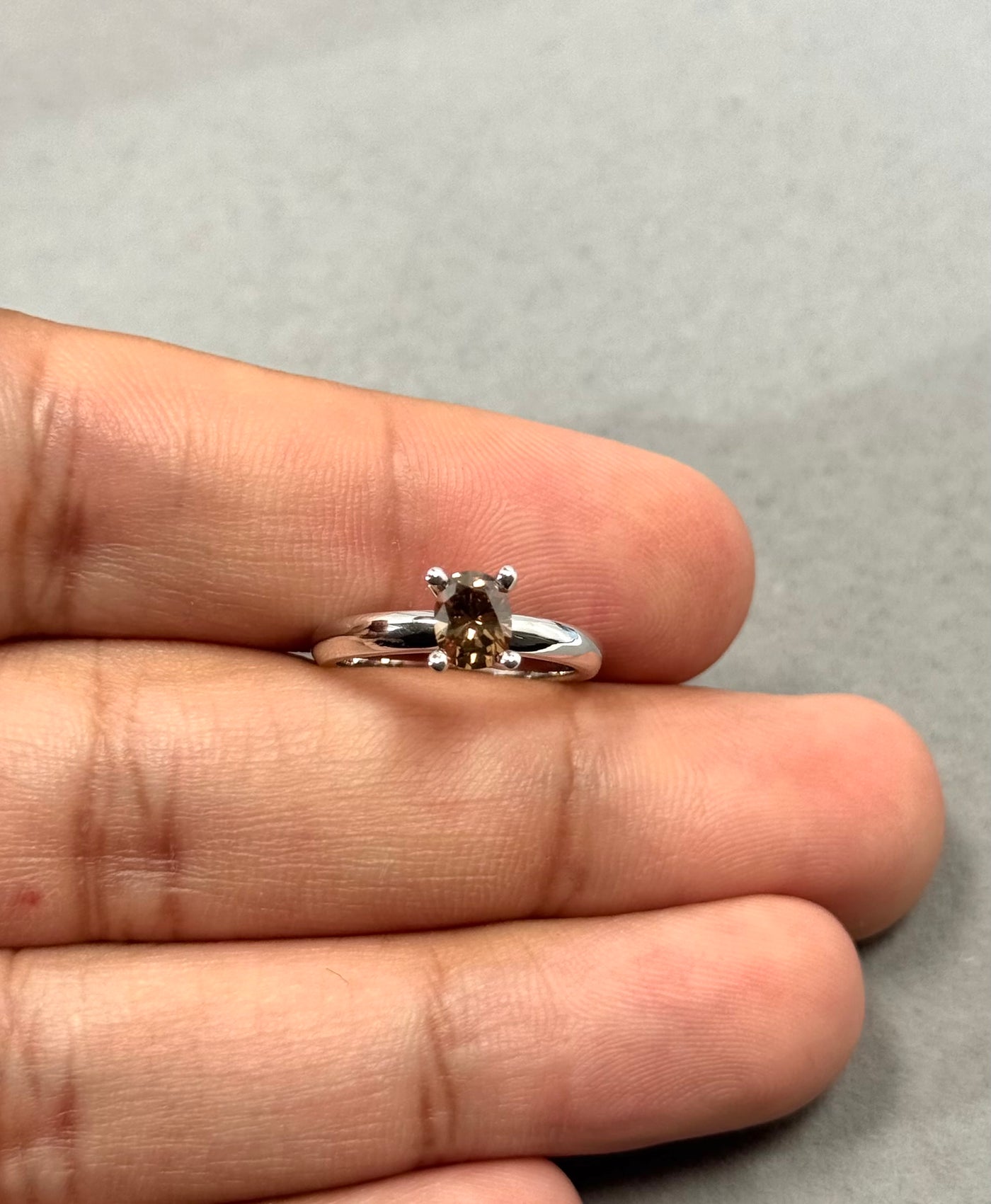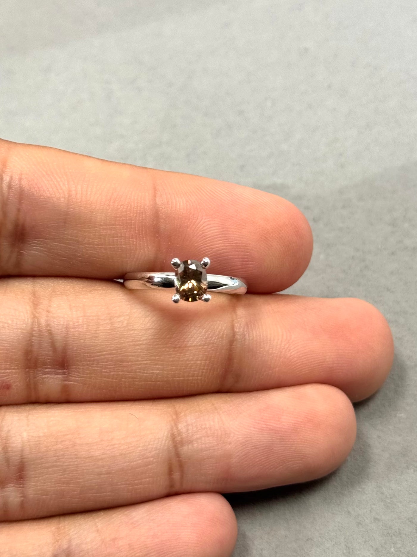 0.48–0.55 Ct Oval Brown Diamond Solitaire Ring in 14K White Gold, SI Natural Diamond, 2.2 mm Band, Women’s Engagement Ring, Size 4
