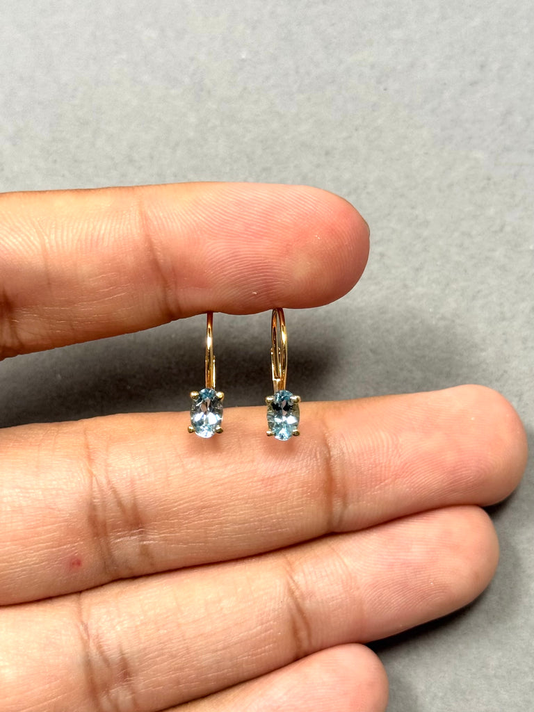 0.65–0.78 Ct Oval Aquamarine Stud Earrings | 6x4 mm AAA Gemstone Scroll Lever Back Earrings in 14K Yellow Gold