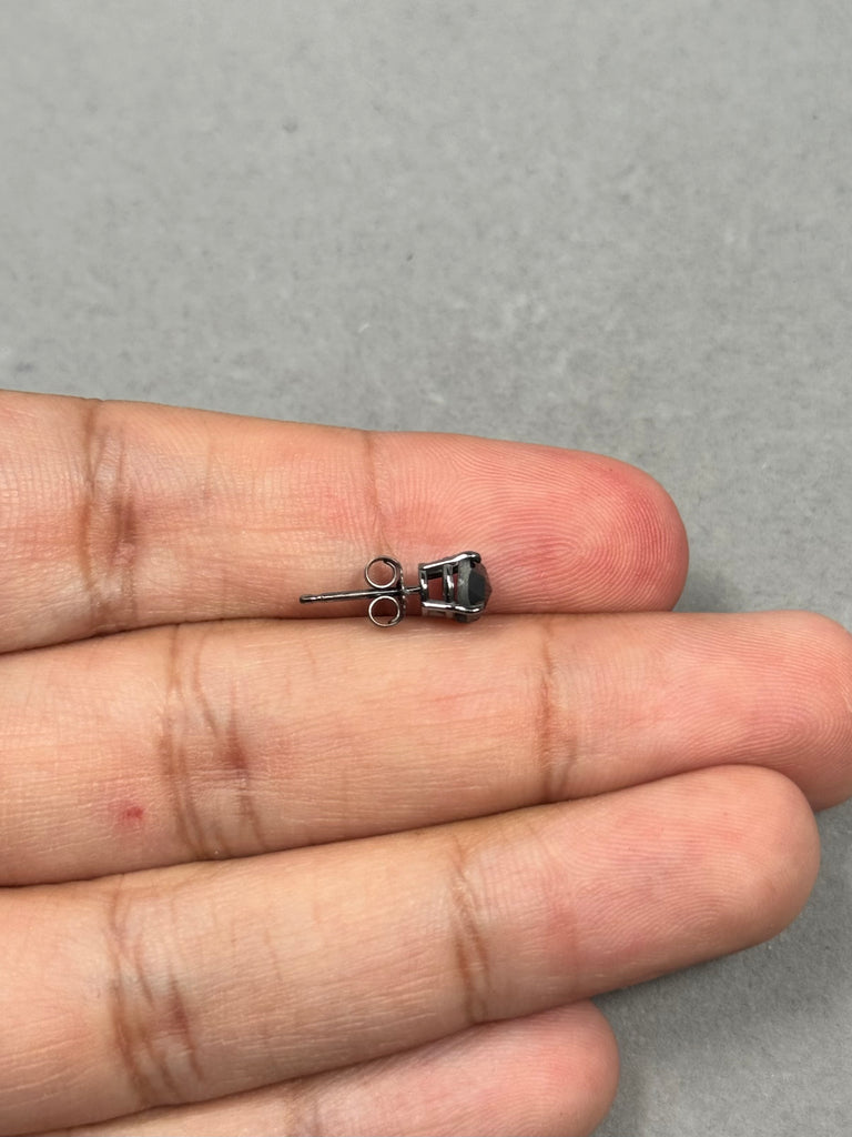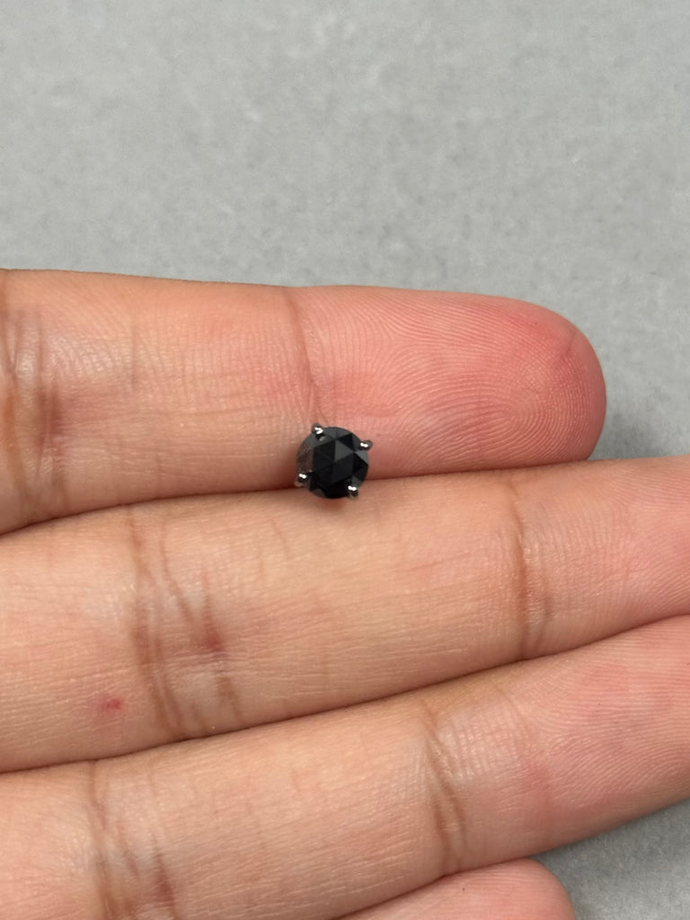 0.70-0.79 Ct Black Diamond Men’s Stud Earring – Round Rose Cut 5.4-6mm AA Quality in 14K Blackened White Gold, Single Push Back Earring