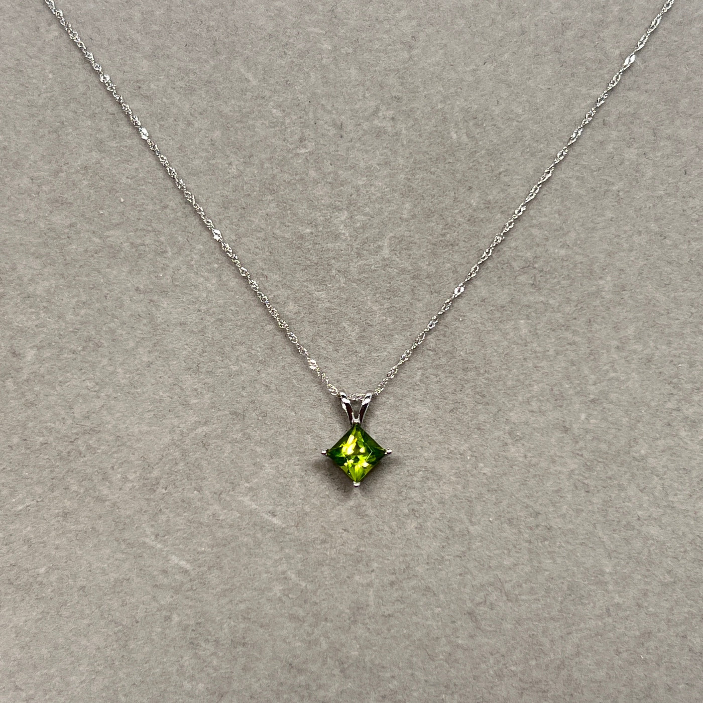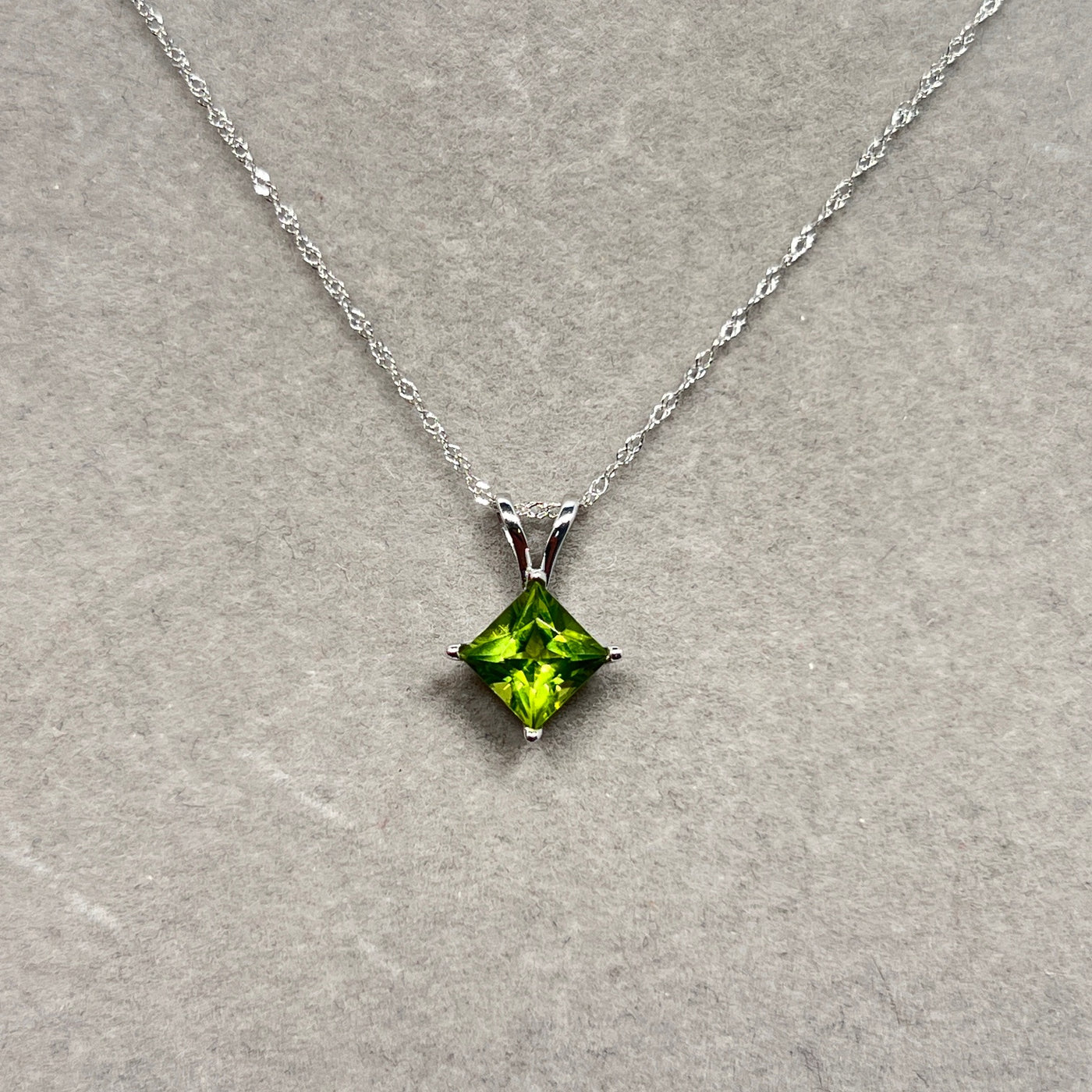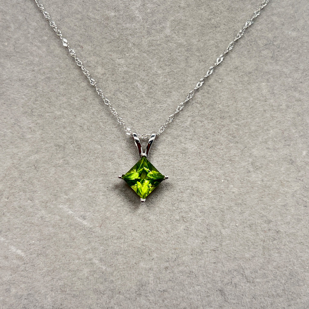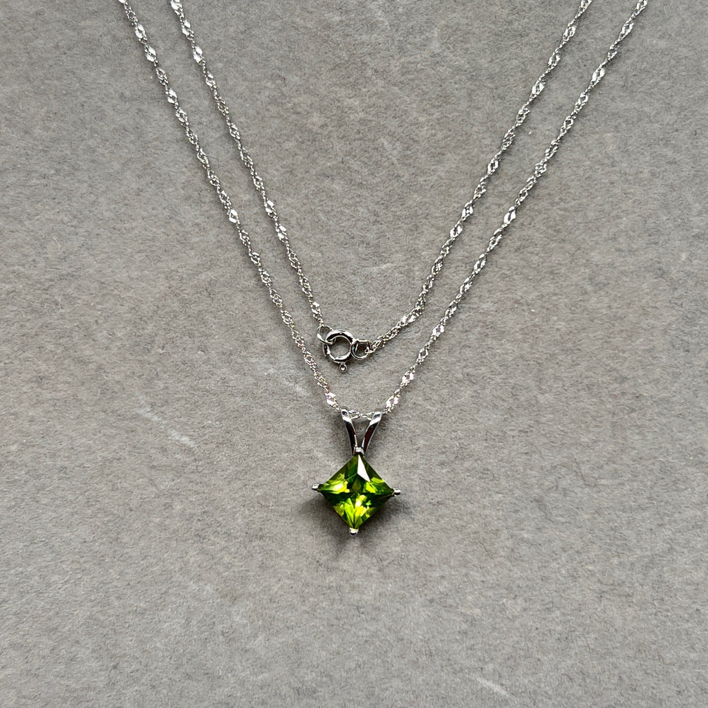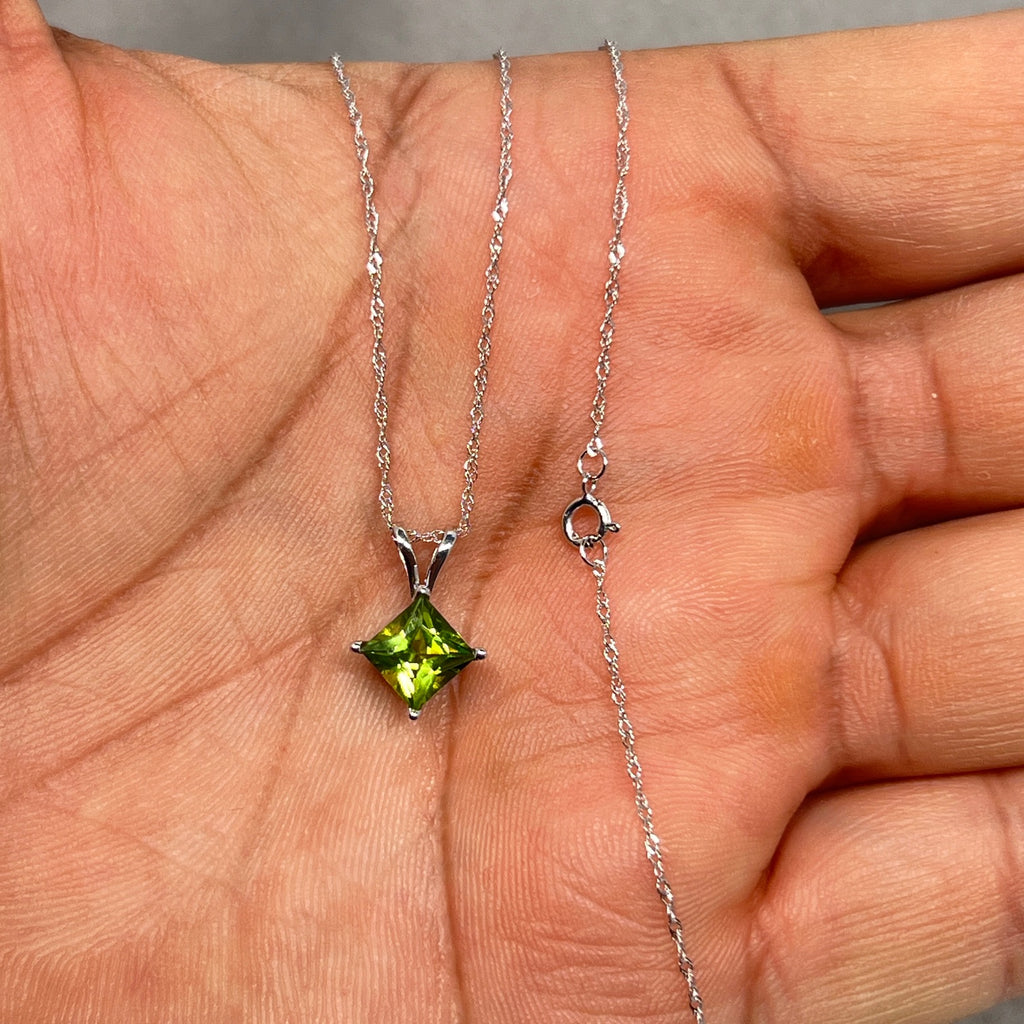 0.90–1.50 Cts Peridot Solitaire Pendant in 14K White Gold | Natural Princess-Cut Peridot August Birthstone Jewelry, Elegant Peridot Pendant
