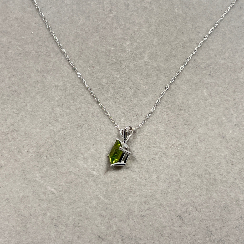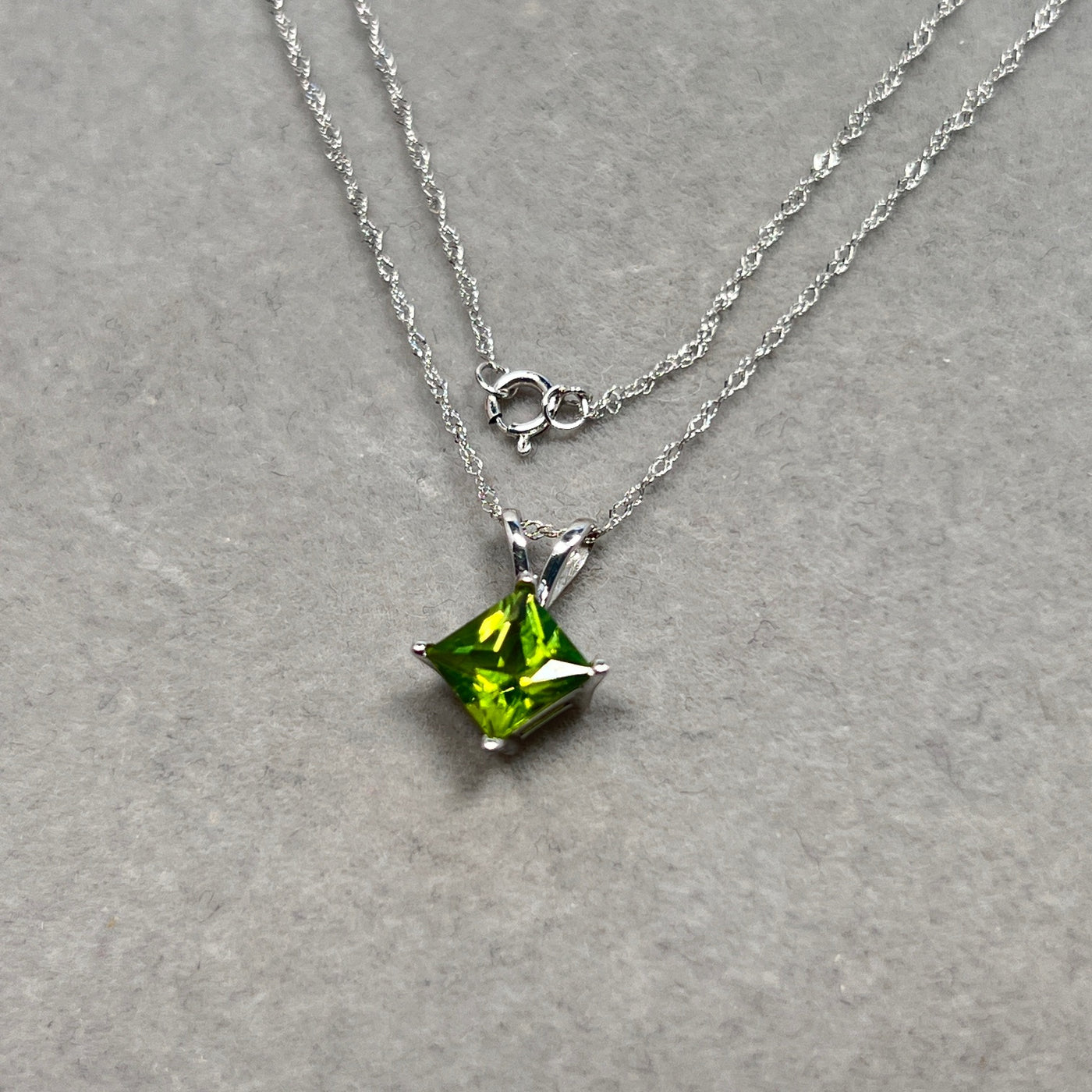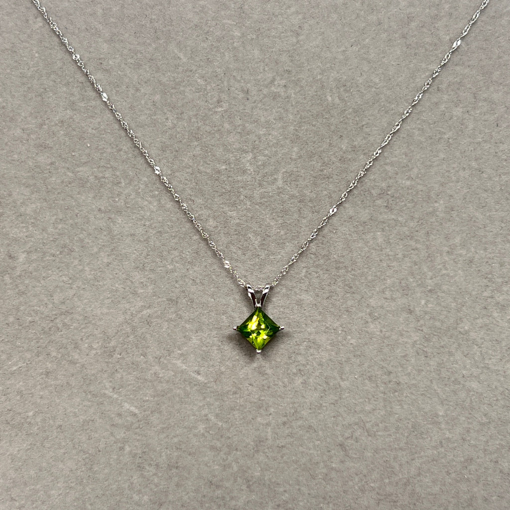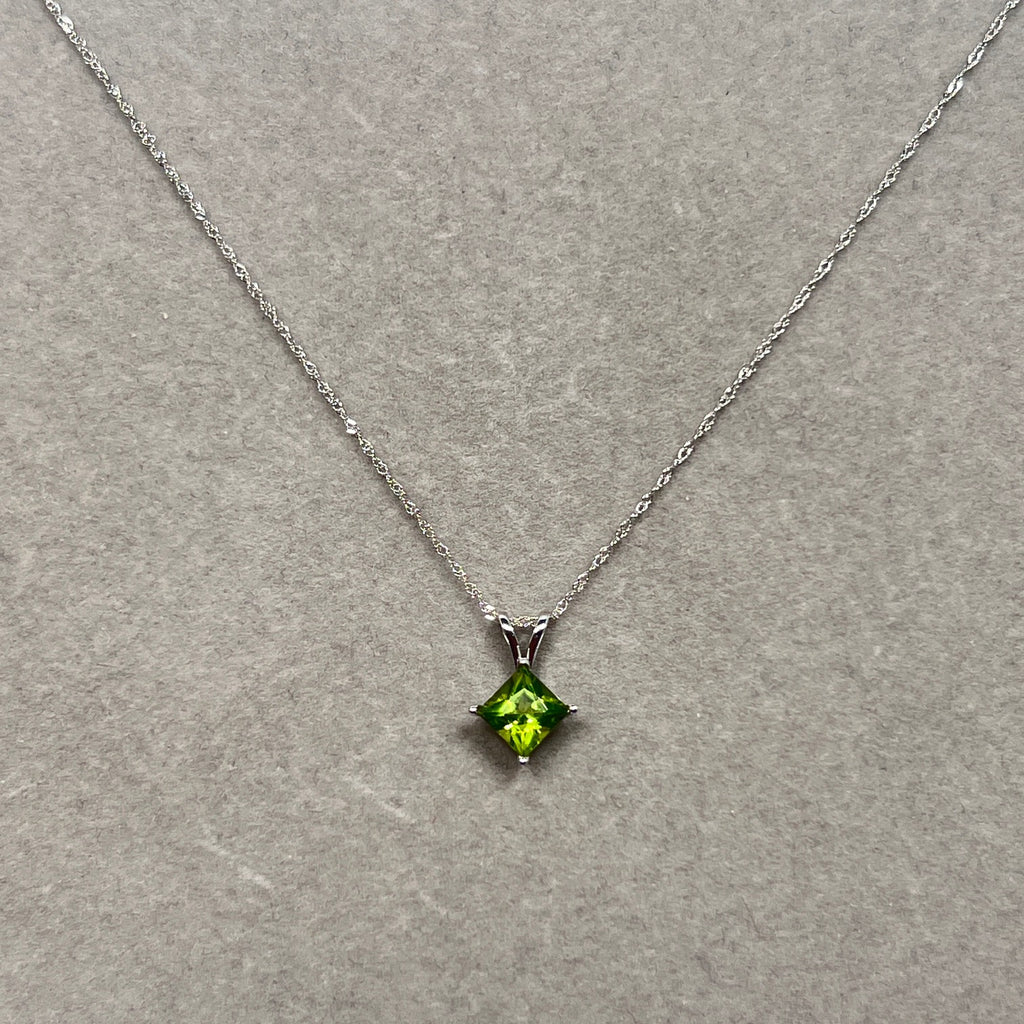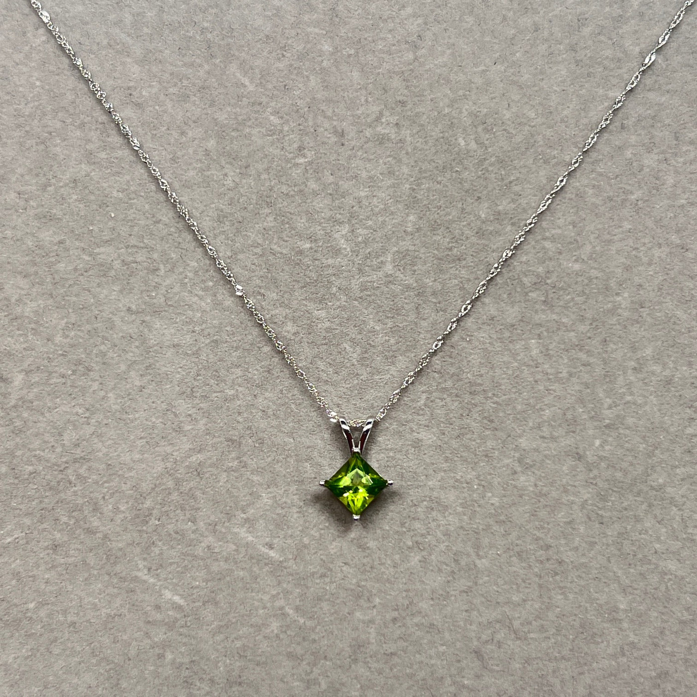 0.90–1.50 Cts Peridot Solitaire Pendant in 14K White Gold | Natural Princess-Cut Peridot August Birthstone Jewelry, Elegant Peridot Pendant