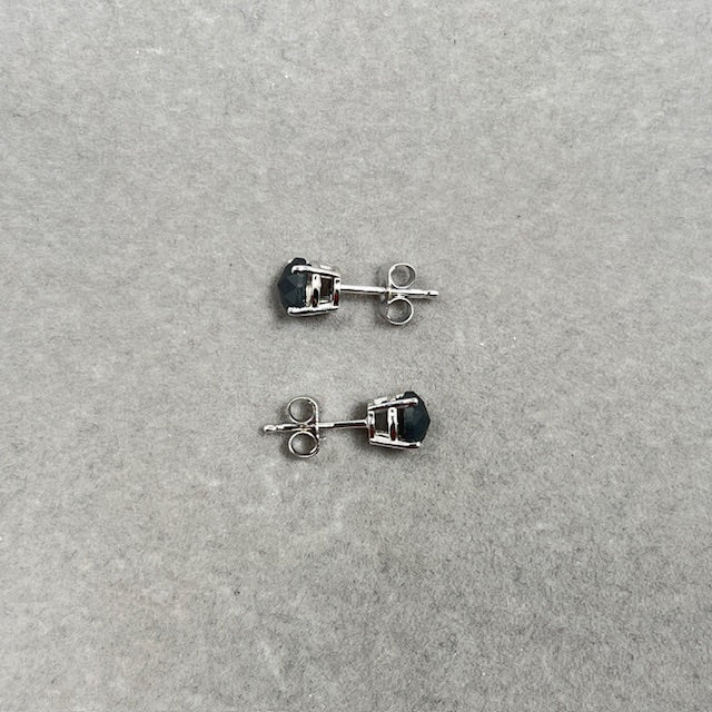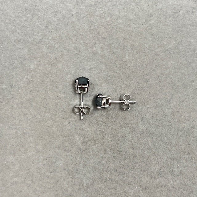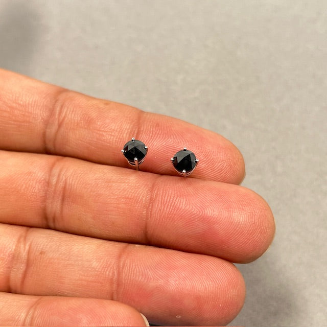 1.00 Ct of 5.40-5.50 mm AAA Round Rose Cut Black Diamond Stud Earrings in 14K White Gold