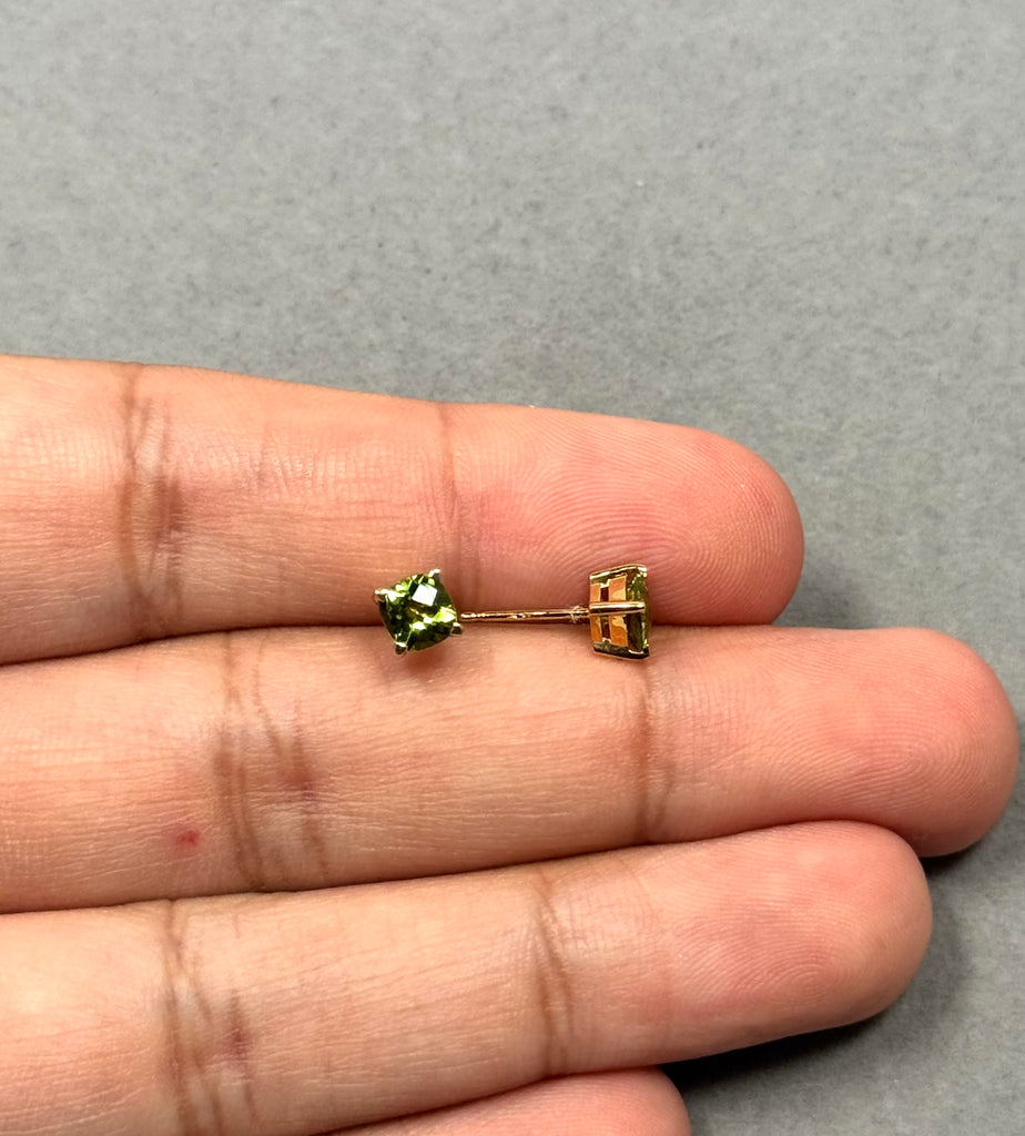 1.11–1.24 Cts Peridot Stud Earrings in 14K Yellow Gold | Natural Peridot Birthstone Earrings, August Birthstone ,Classic Round Peridot