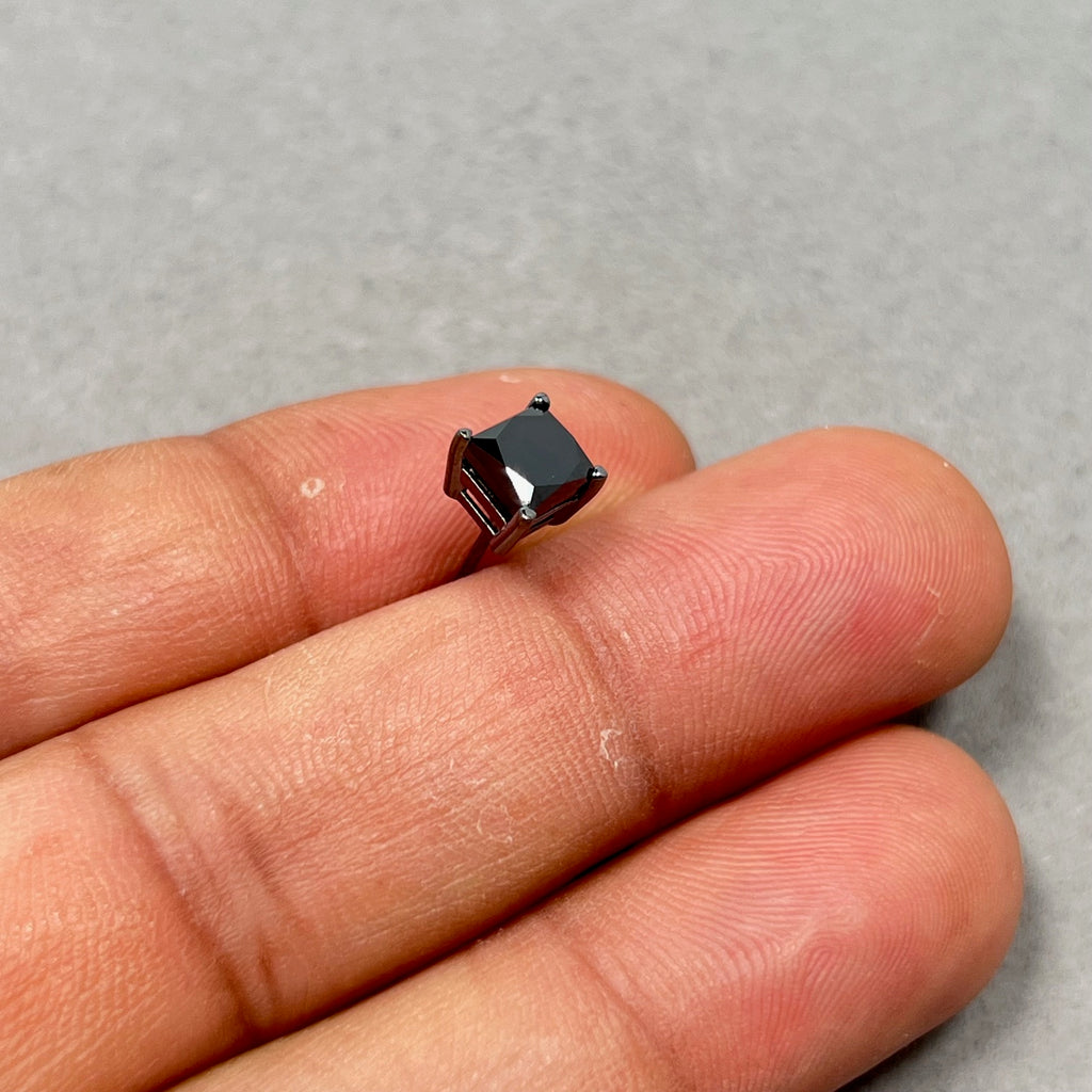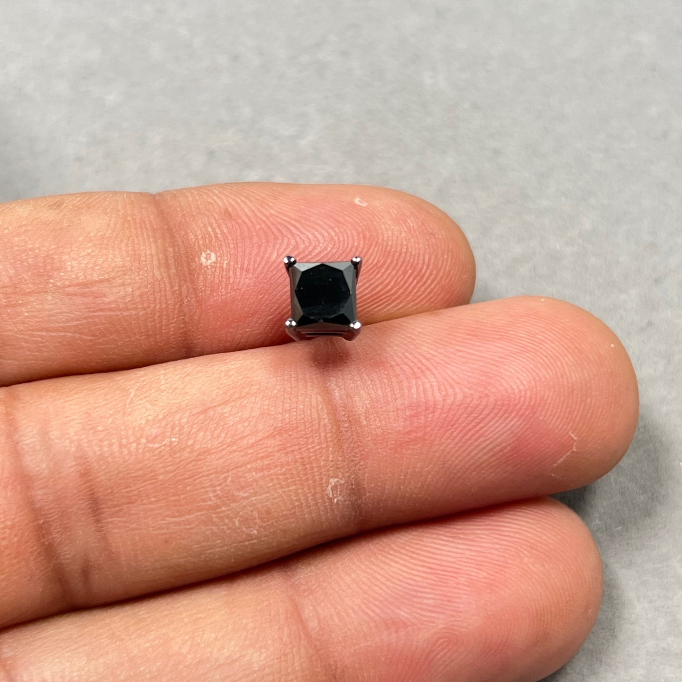 1.25 Ct EGL AA Princess Black Diamond Stud Earrings in 14K Blackened White Gold, Men’s Solitaire Diamond Earrings, Push Back