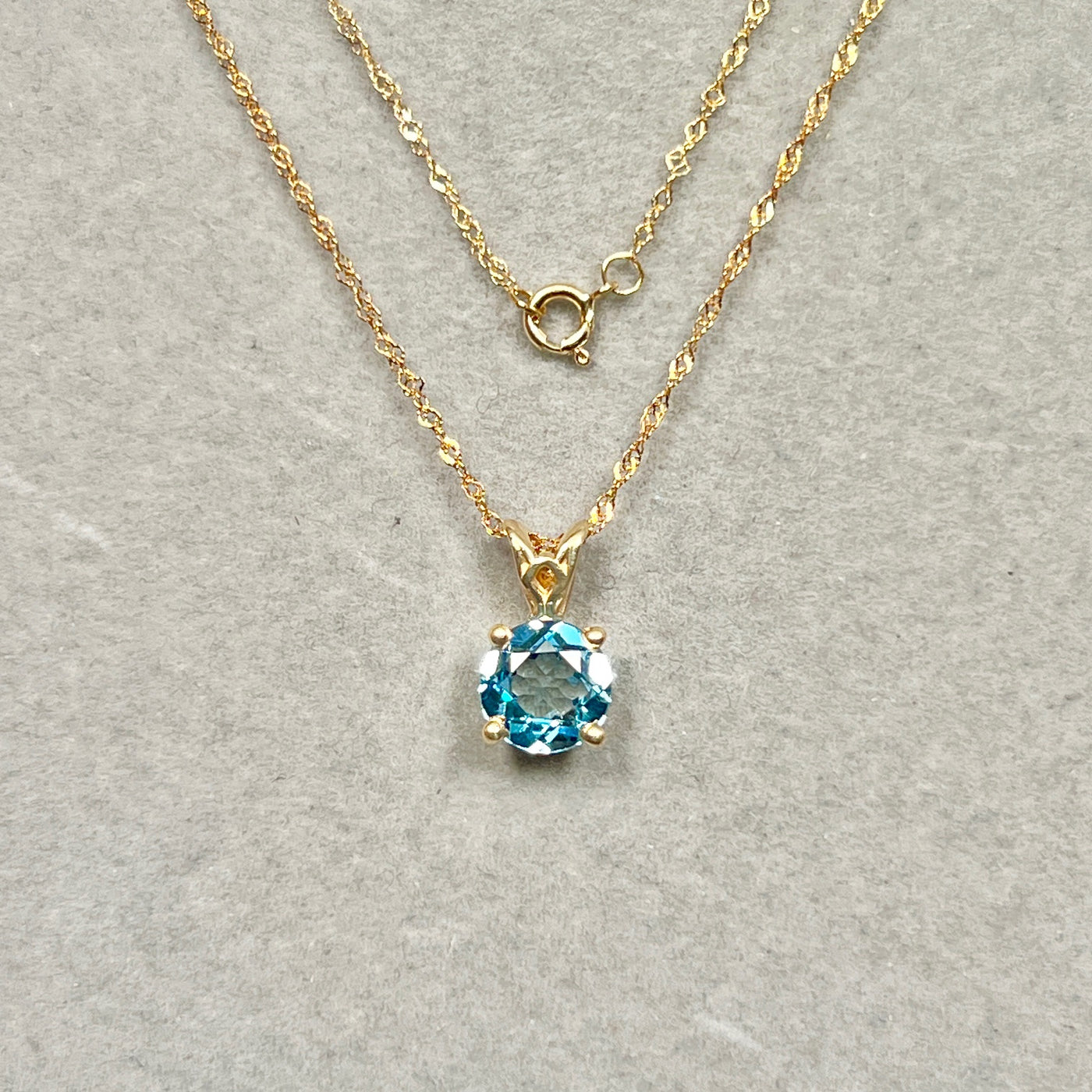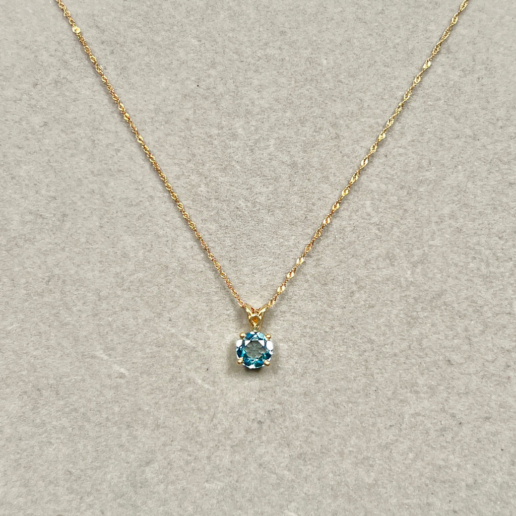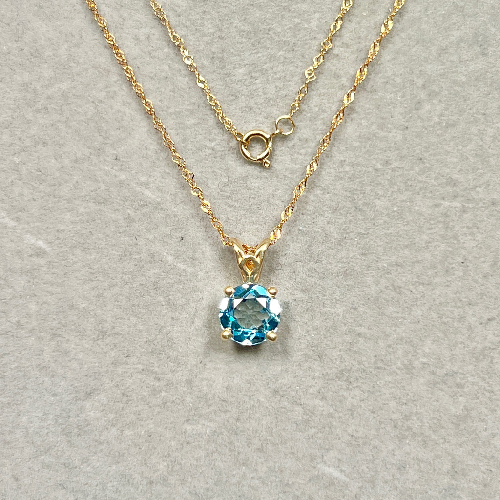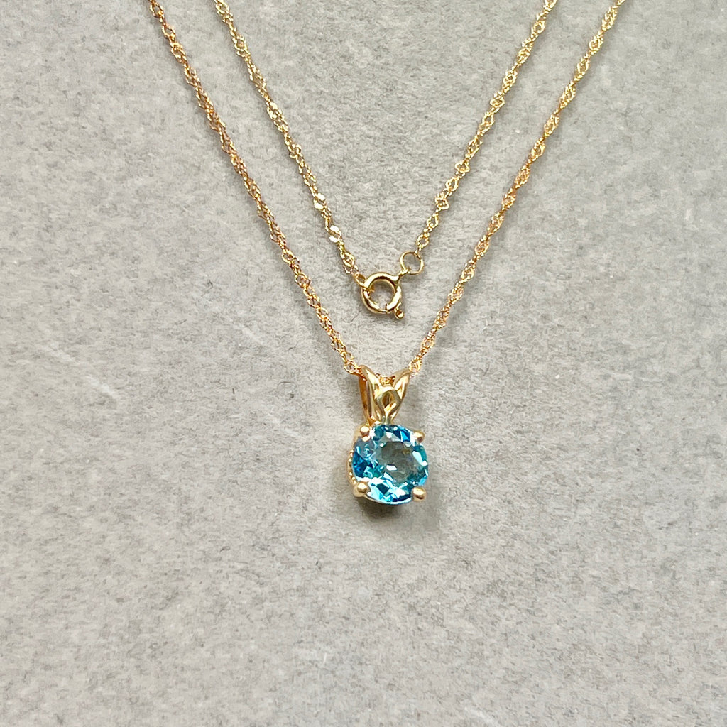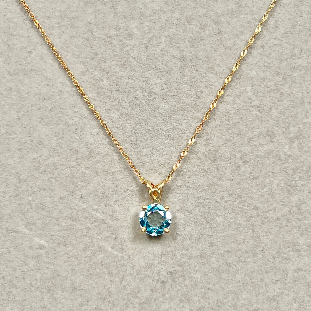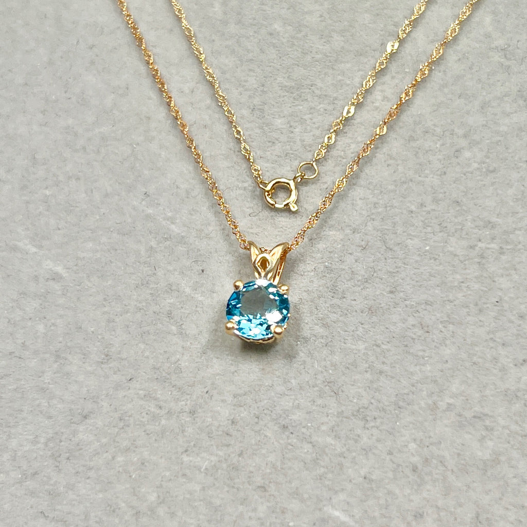 1.42 Cts AAA Round Swiss Blue Topaz Solitaire Scroll Pendant 14K Yellow Gold – 18” Chain