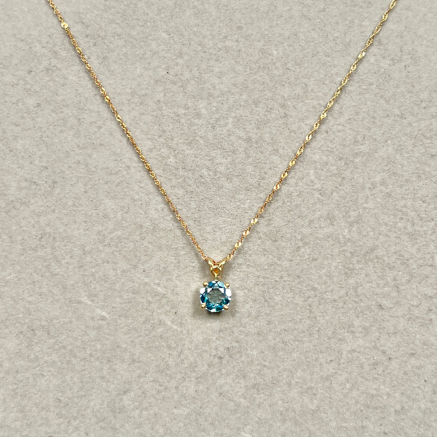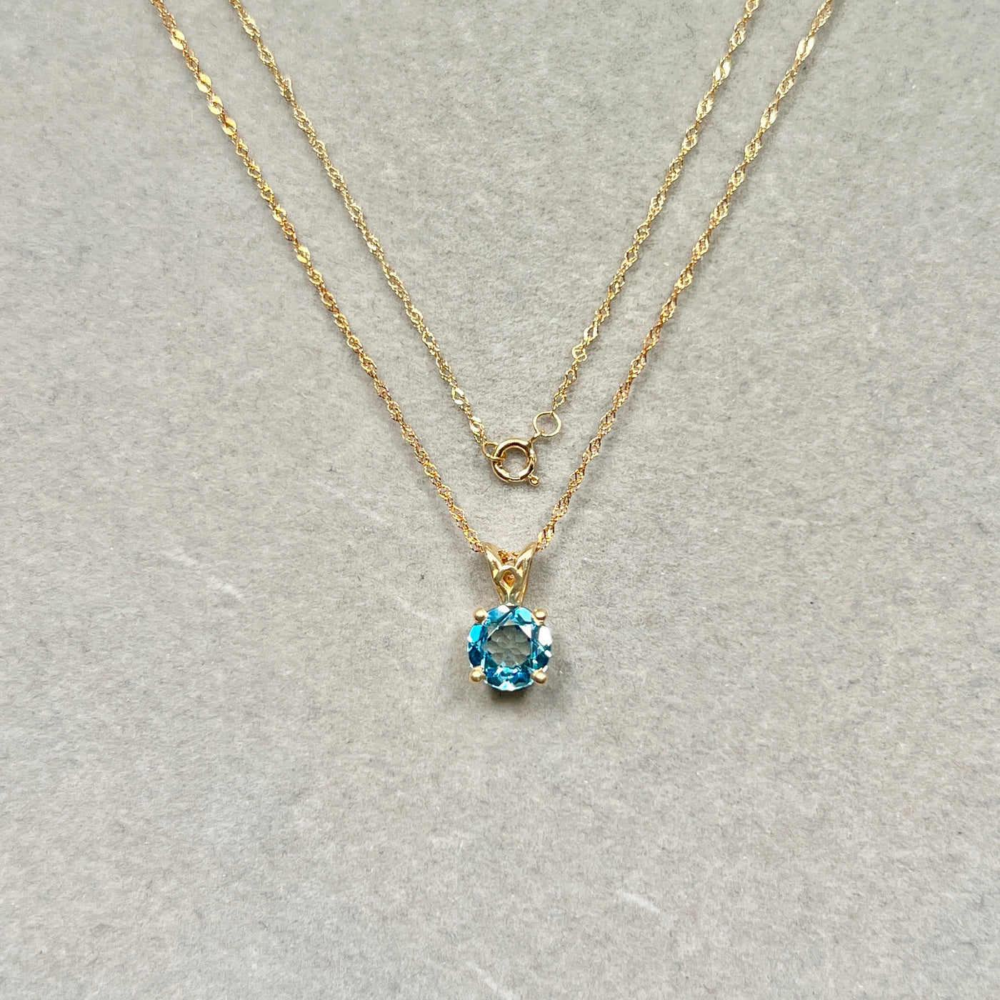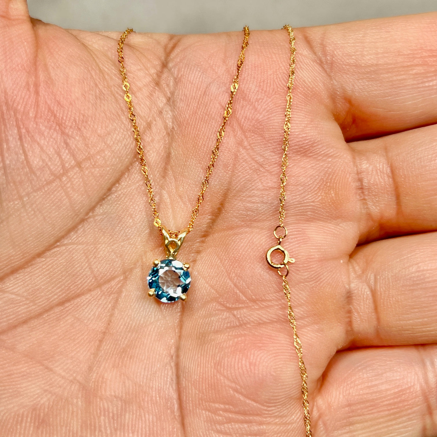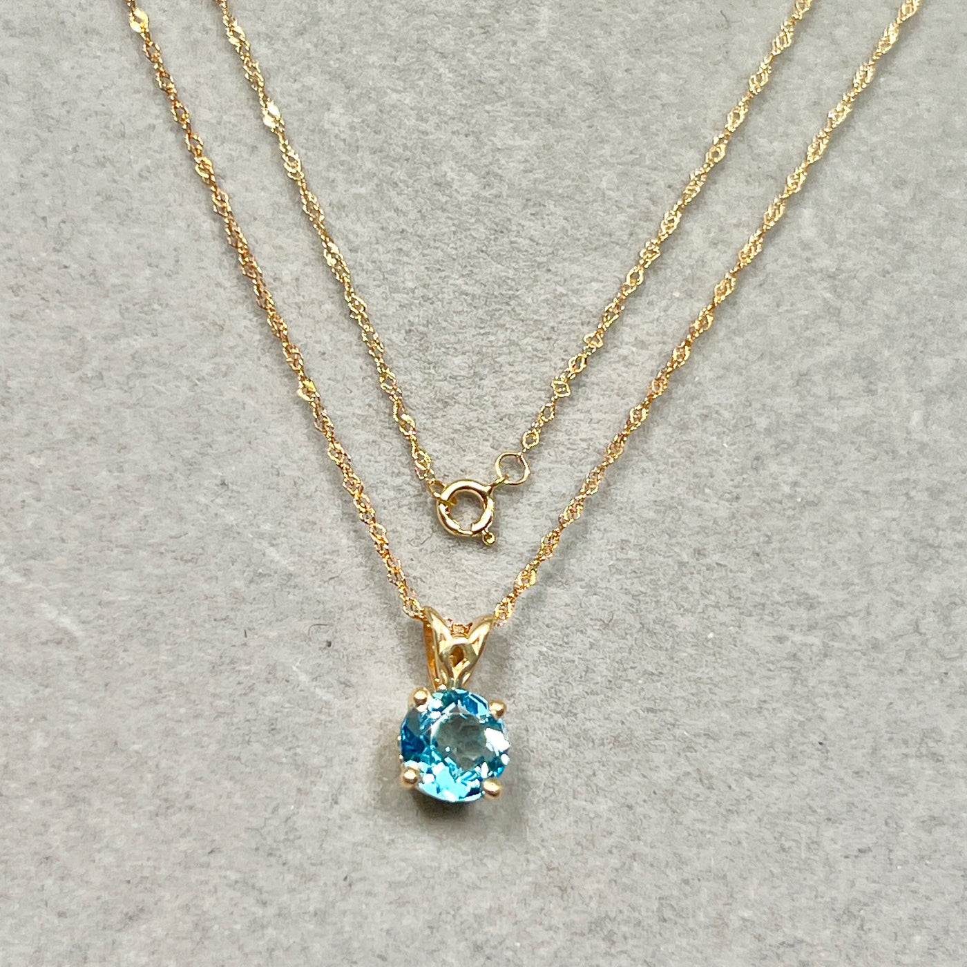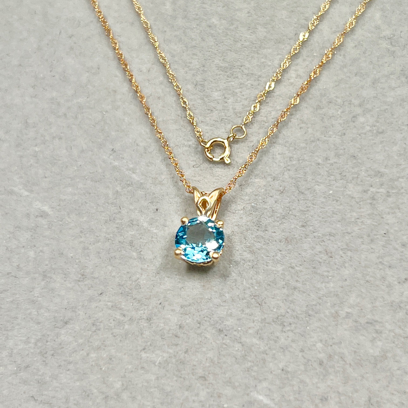 1.42 Cts AAA Round Swiss Blue Topaz Solitaire Scroll Pendant 14K Yellow Gold – 18” Chain