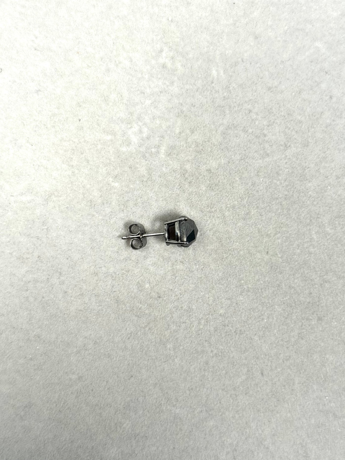 1.50 Ct Black Diamond Men’s Stud Earring | EGL USA Certified Rose Cut Round AAA Black Diamond in 14K Blackened White Gold | Push Back