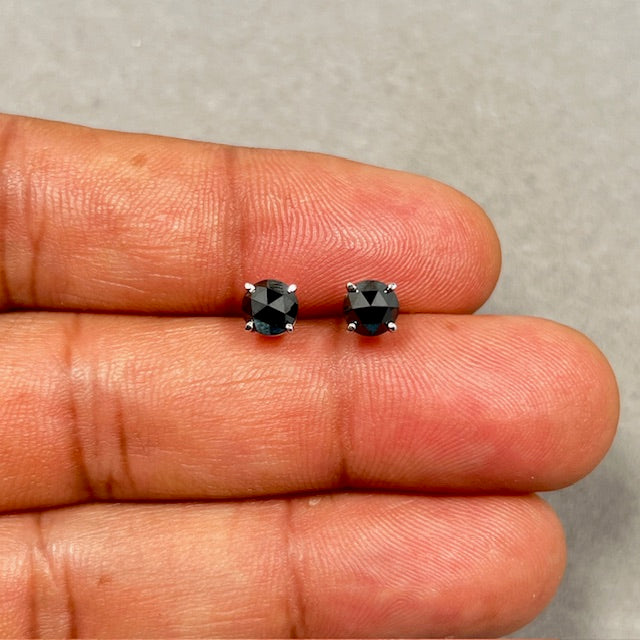1.65 Ct AAA Black Diamond Stud Earrings 14K White Gold, Round Rose Cut Solitaire Four Prong, Luxury Women’s Jewelry Gift