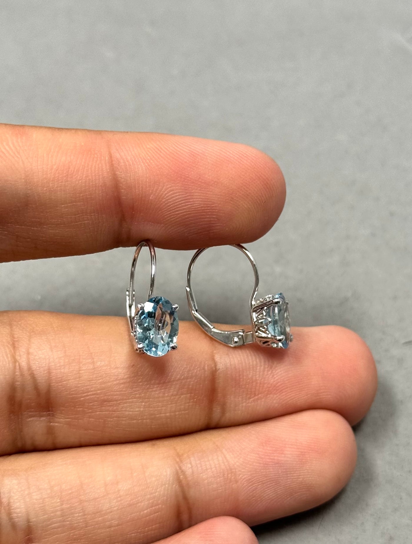 1.74–2.31 Ct Oval Aquamarine Stud Earrings | 8x6 mm AA Quality Scroll Lever Back in 14K White Gold