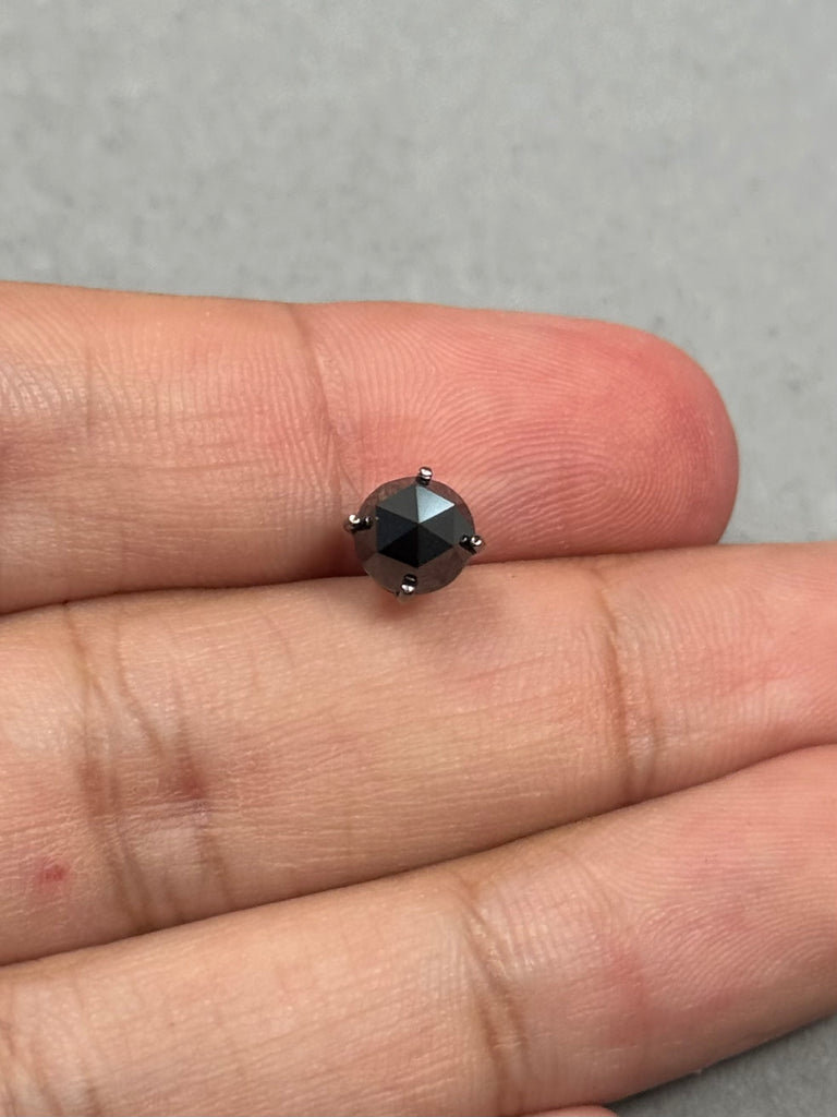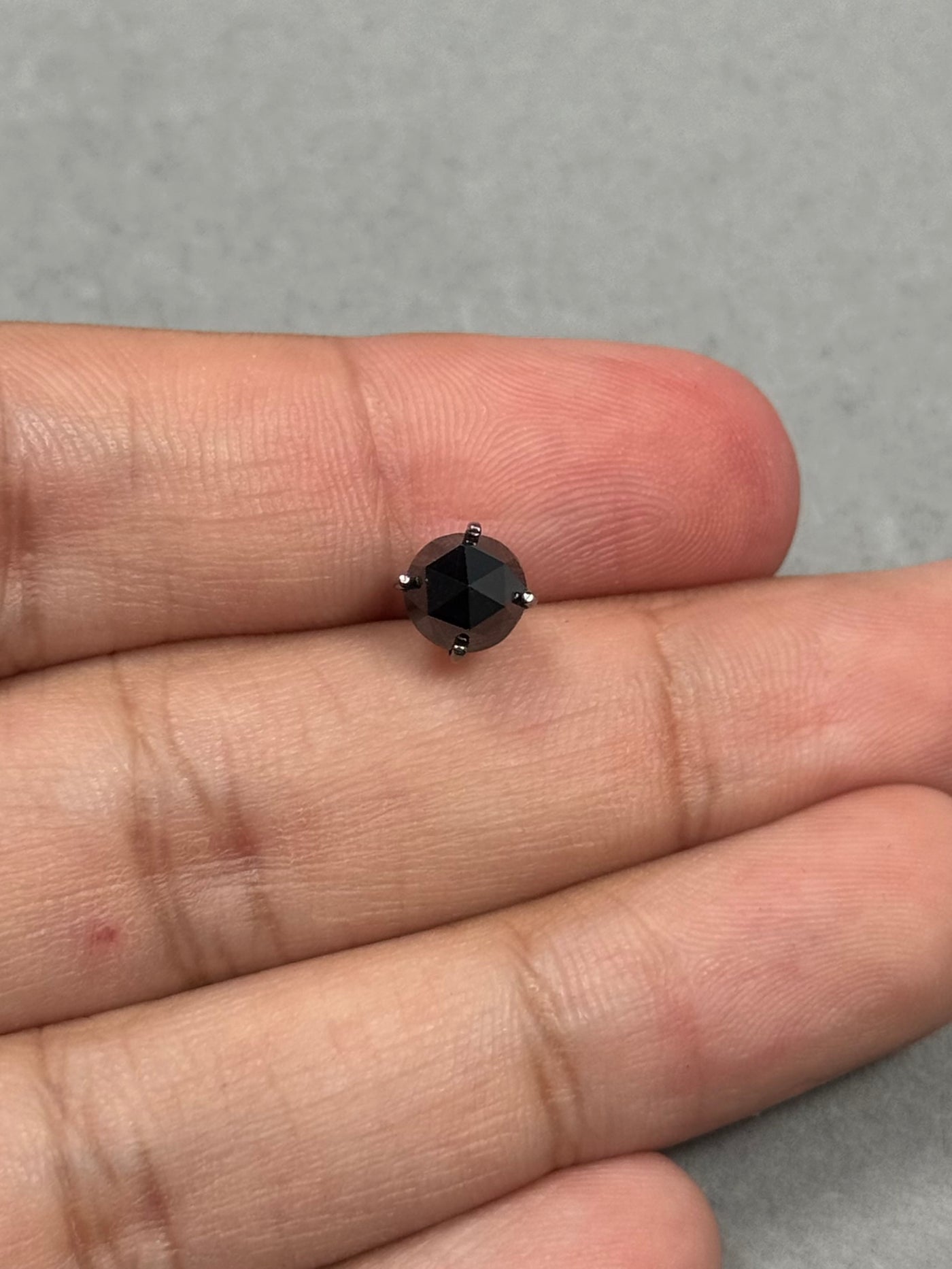 1.75 Ct Black Diamond Men’s Stud Earring | EGL USA Certified AAA Round Rose Cut Diamond in 14K Blackened White Gold | Push Back