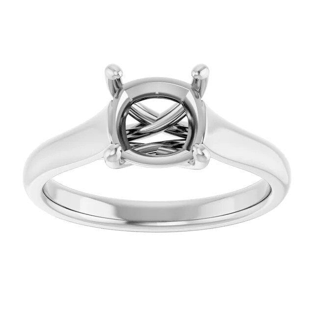 14K Gold Cushion Solitaire Engagement Ring Mounting Available in 5x5mm - 10x10mm