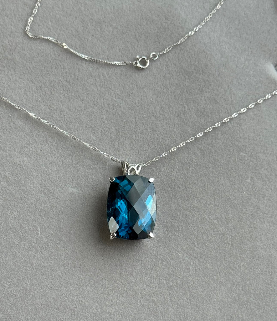 - Stone: London Blue Topaz (AAA grade), approx. 23.27 ct