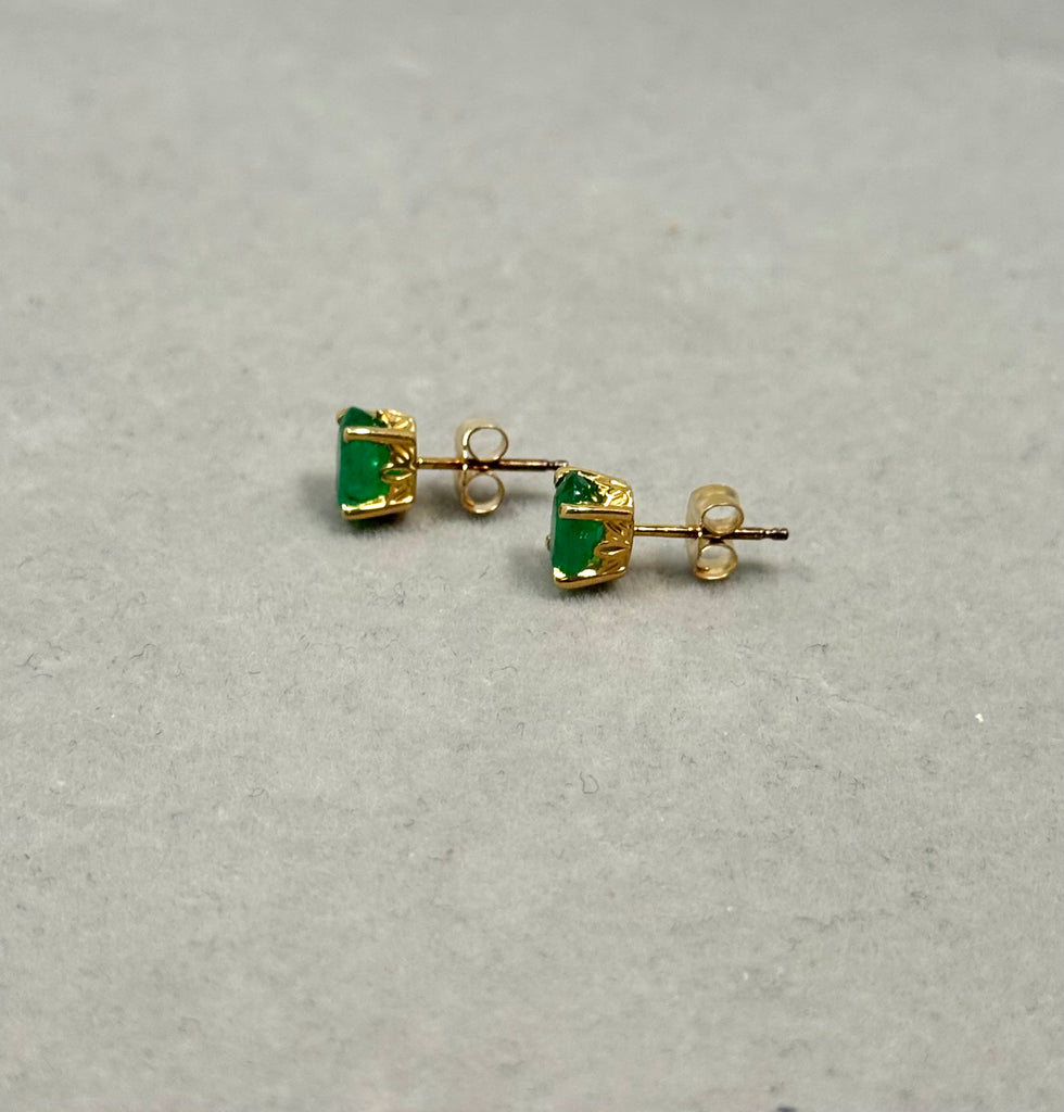 14K Yellow Gold Emerald Stud Earrings – 1.20-1.60 Ct 7x5mm AA Oval Natural Green Scroll Earrings – Genuine May Birthstone Jewelry Gift