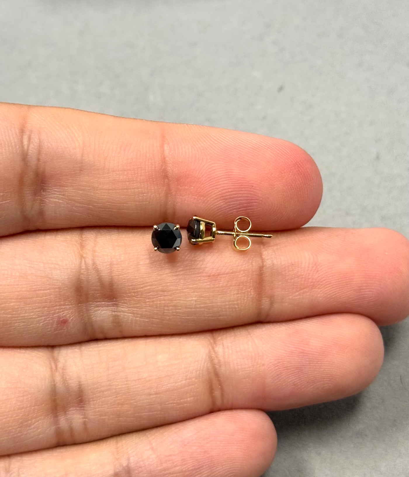18K Yellow Gold Rose Cut Black Diamond Stud Earrings 3/4 Ct 3.50–4.00 mm AAA Round Design for Women