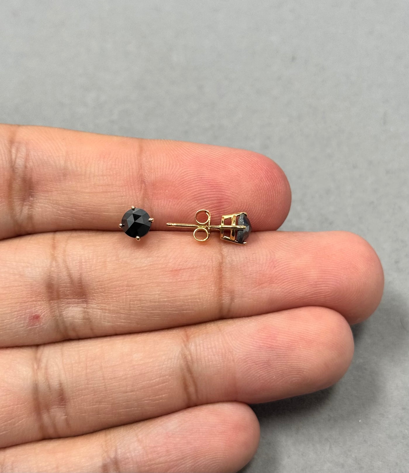 18K Yellow Gold Round Rose Cut Black Diamond Stud Earrings for women 1.00 Ct AAA 5.4–5.5 mm Prong Set