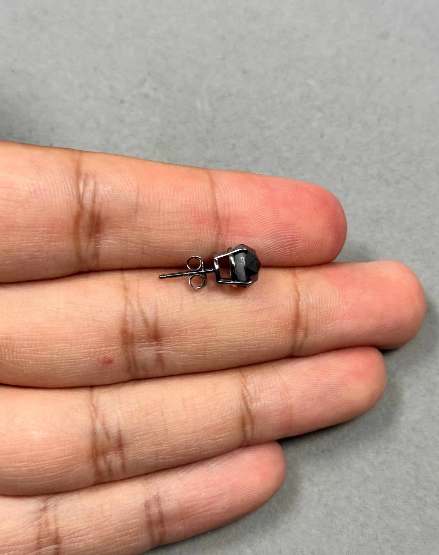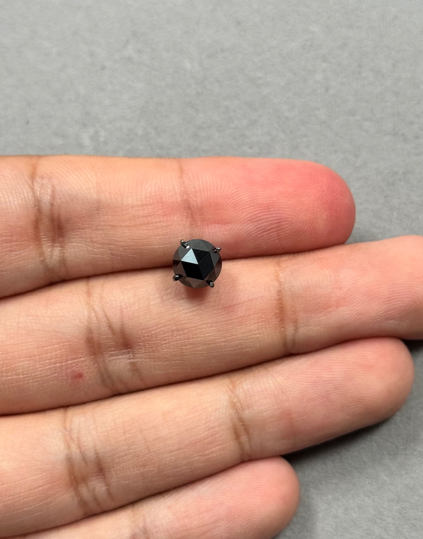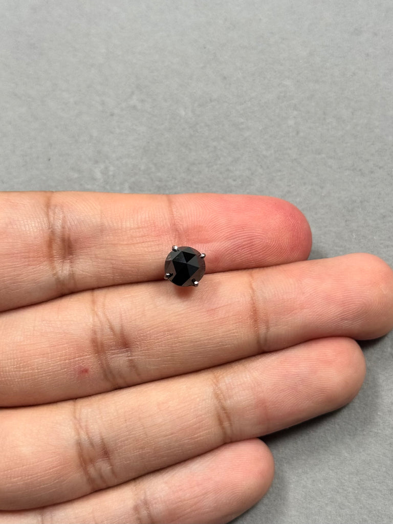 2.00 Ct Black Diamond Men’s Stud Earring – EGL USA Certified AAA Round Rose Cut 7.05-8.8mm in 14K Blackened White Gold, Single Earring