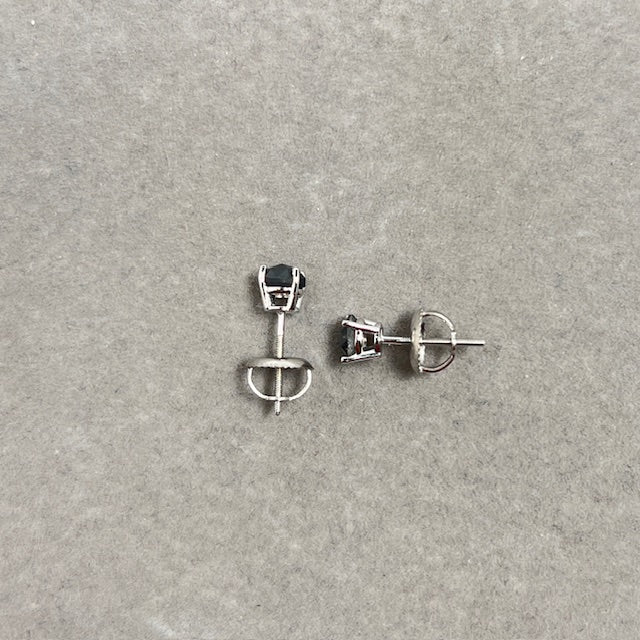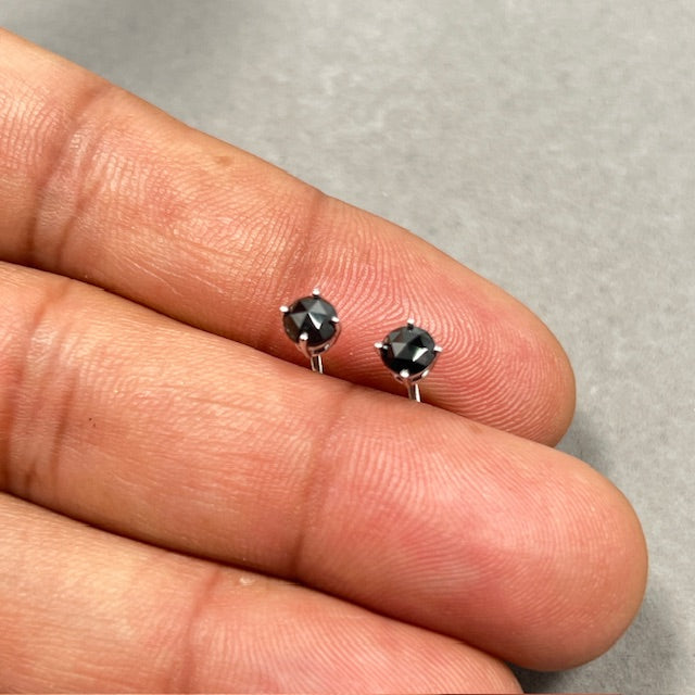 3/4 Ct AAA Black Diamond Stud Earrings 14K White Gold, Round Rose Cut Solitaire Four Prong Classic Women's Jewelry