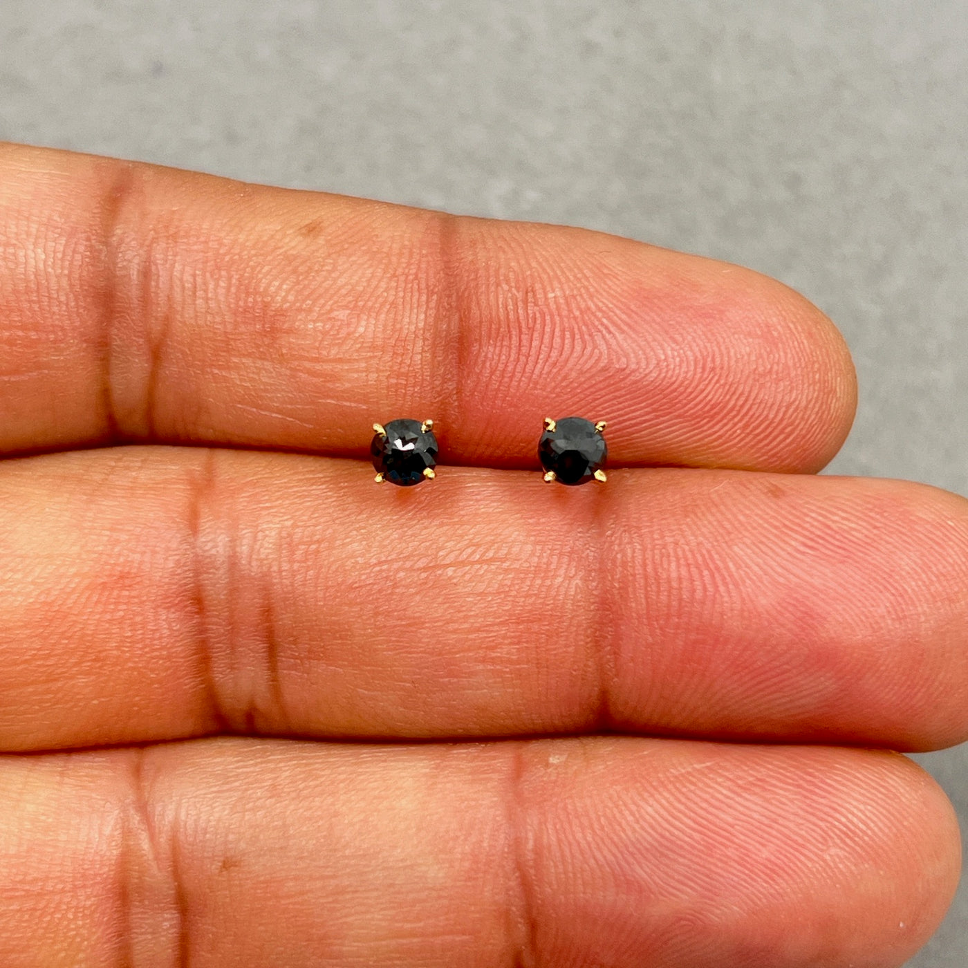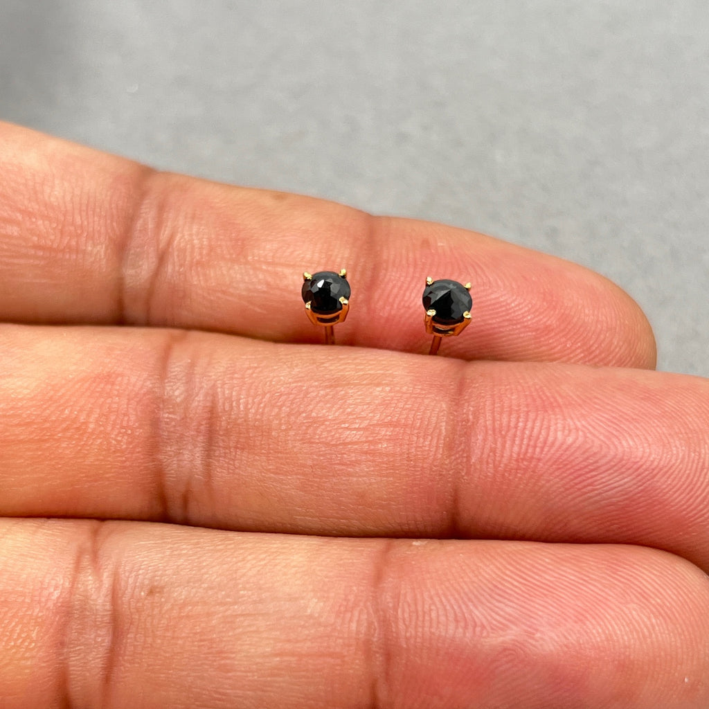 3/4 Ct Round Rose Cut Black Diamond Stud Earrings 14K Yellow Gold | Genuine Black Diamond Solitaire Earrings for Women