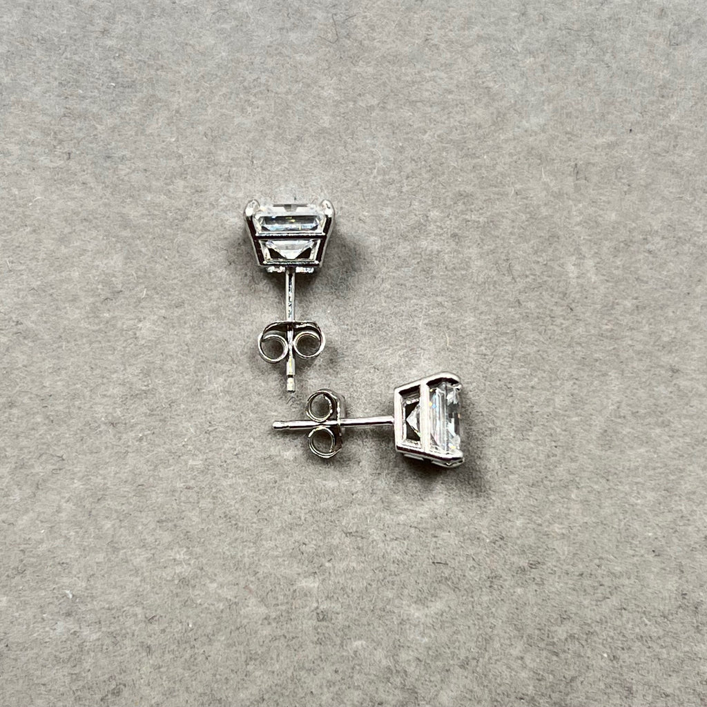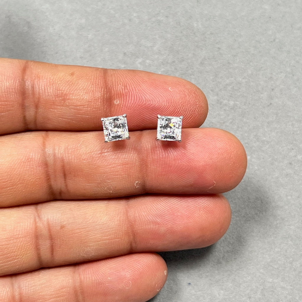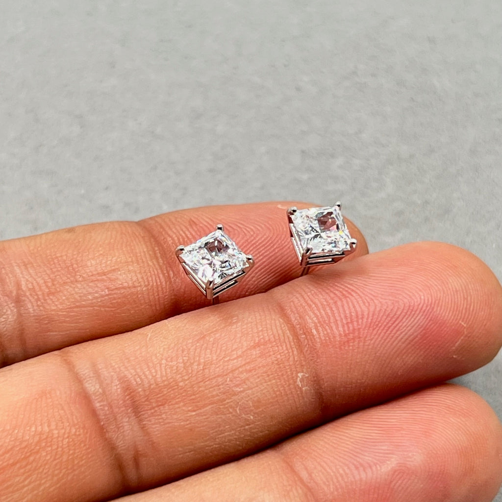 6mm Genuine Bling CZ Princess Cut Stud Earrings in Sterling Silver, Hearts & Arrows Cut Cubic Zirconia Earrings