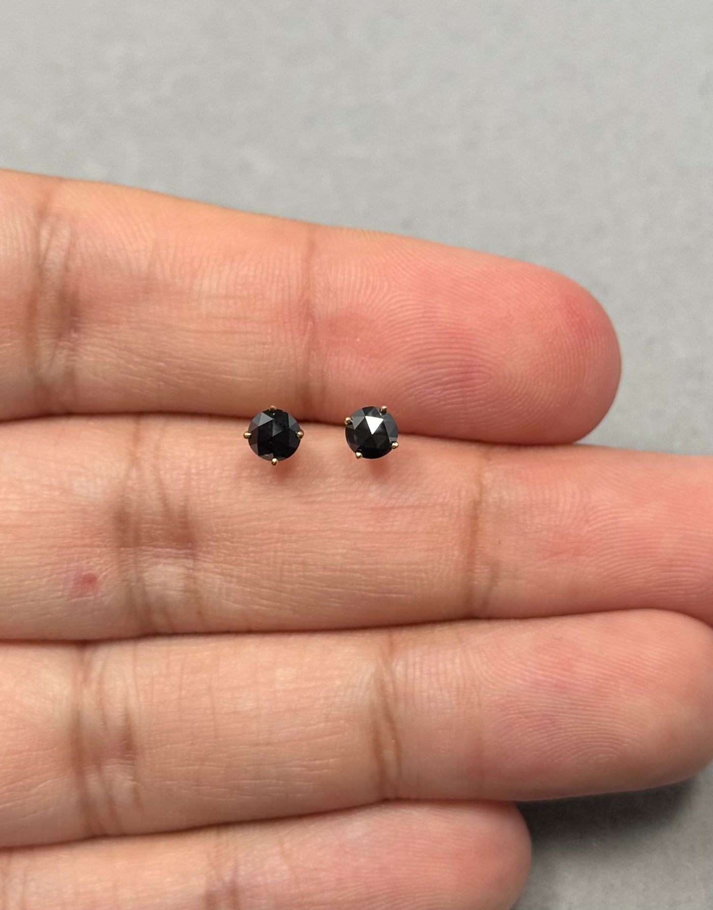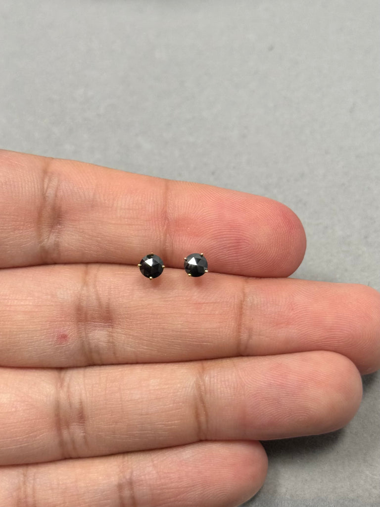 AAA Rose Cut Black Diamond Stud Earrings 1/2 Ct 18K Yellow Gold Prong Set Minimal Jewelry for women