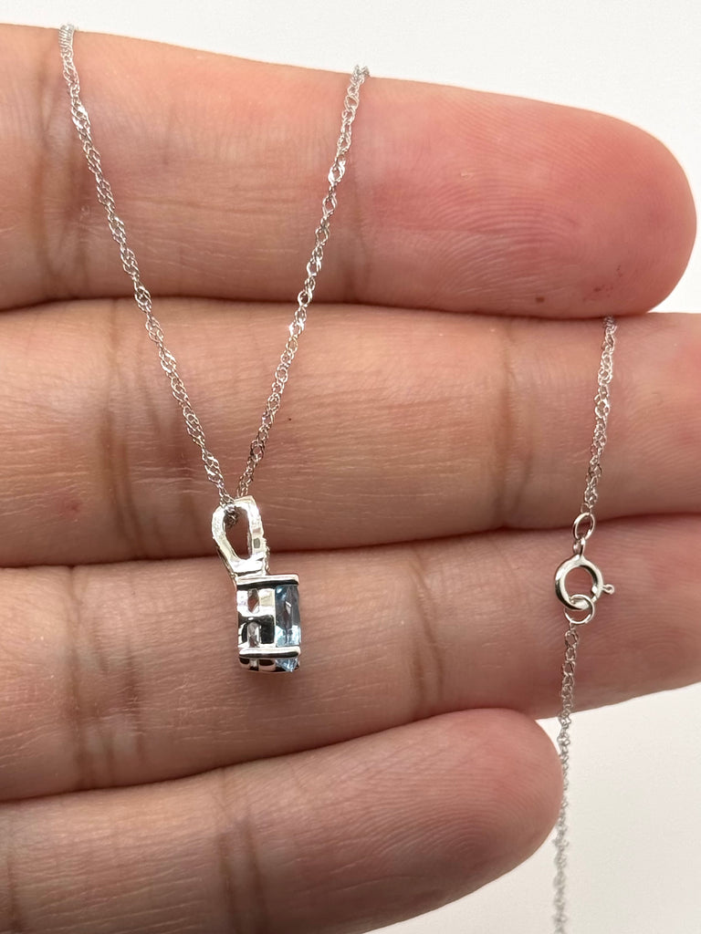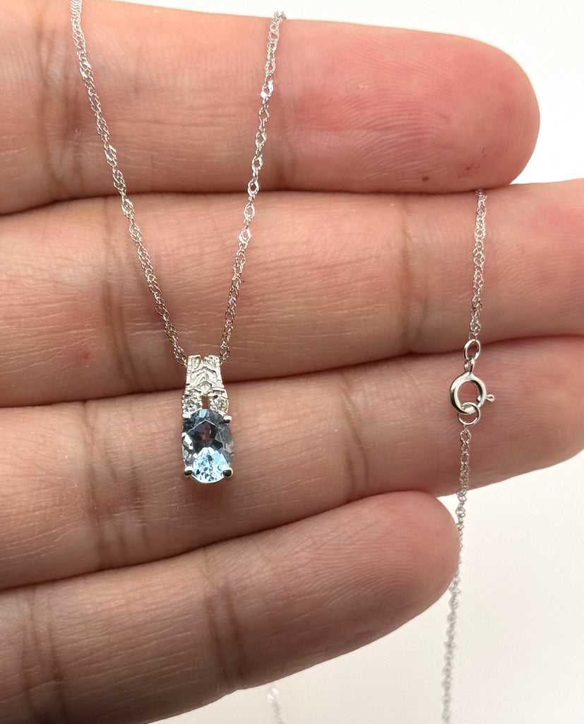 Aquamarine Diamond Pendant | 14K White Gold Oval Necklace — March Birthstone Gift for Her