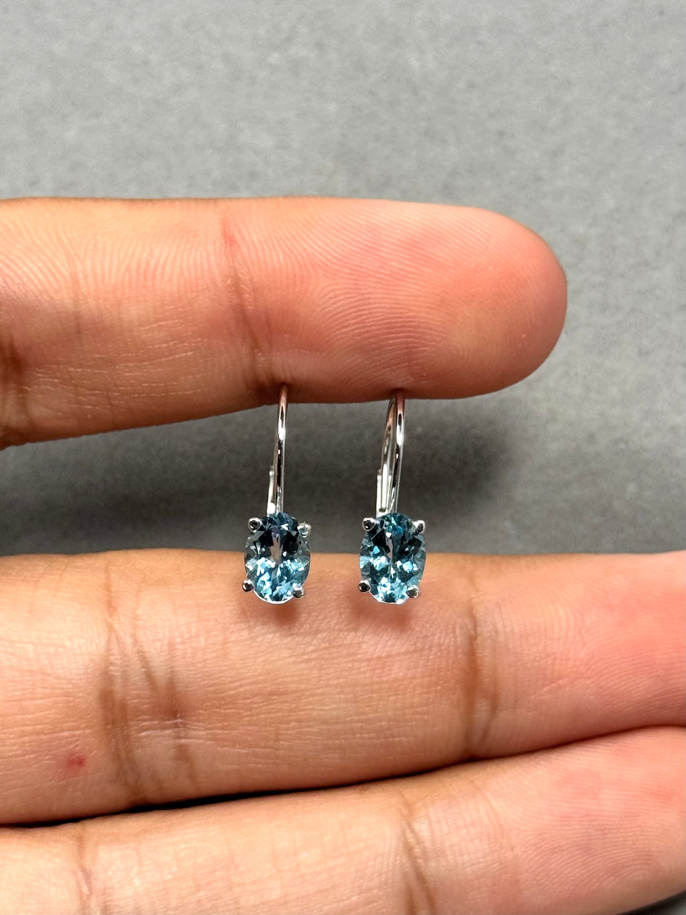 Aquamarine Stud Earrings – 1.50 Ct 7x5 mm AAA Oval Aquamarine Scroll Lever Back Earrings in 14K White Gold