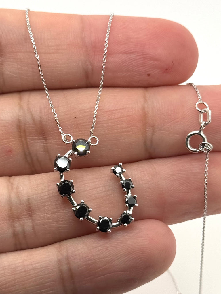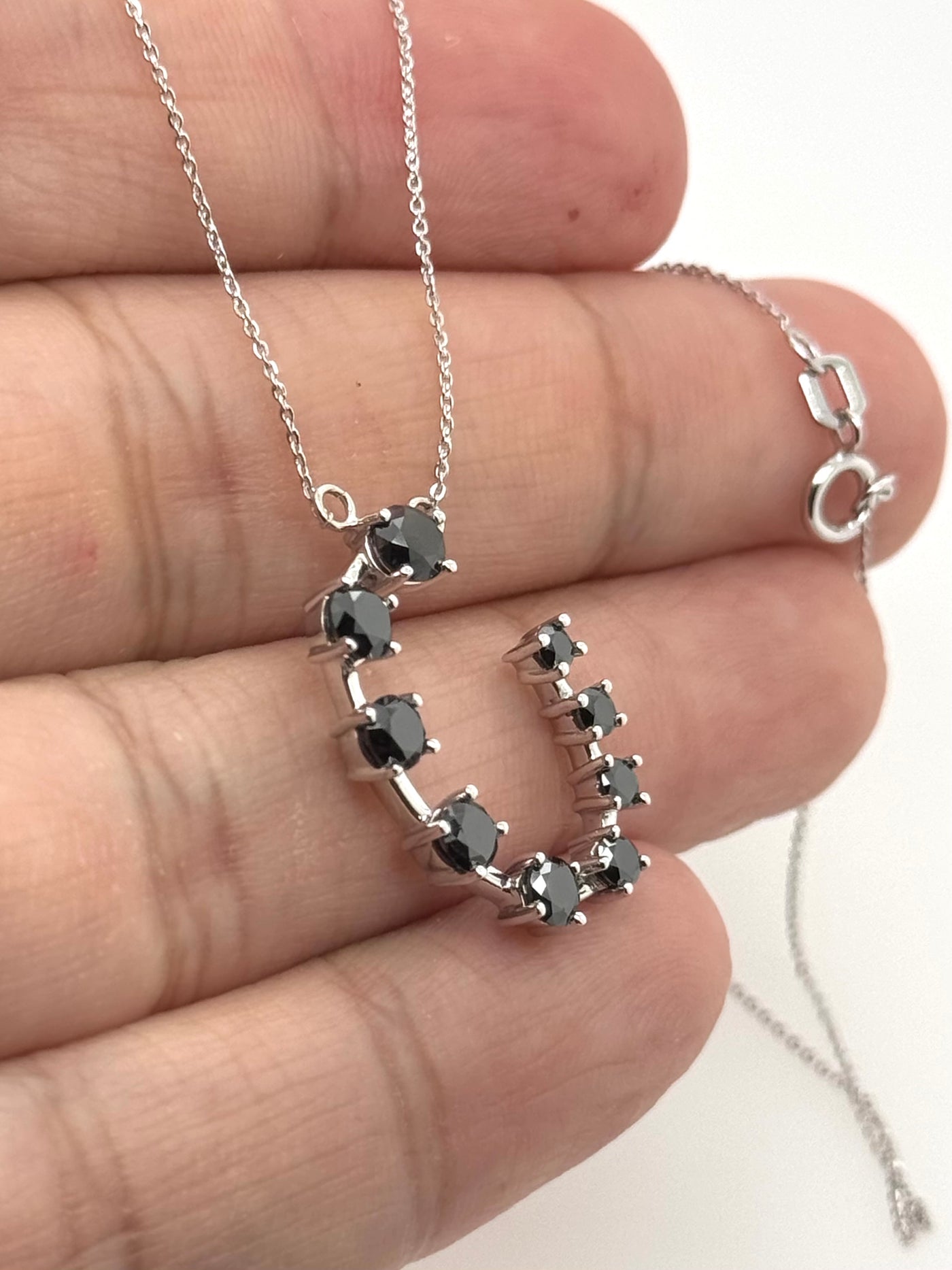 Black Diamond Journey Pendant | 14K White Gold Geometric Necklace — Elegant Statement Gift for Her