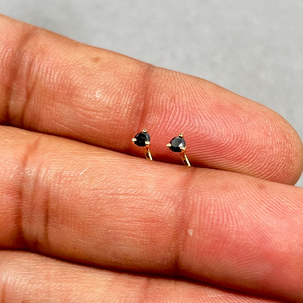 Black Diamond Stud Earrings 14K Yellow Gold • 0.09 Ct Round AAA 2.5-3mm Solitaire Diamond Earrings • Fine Jewelry Gift for Her