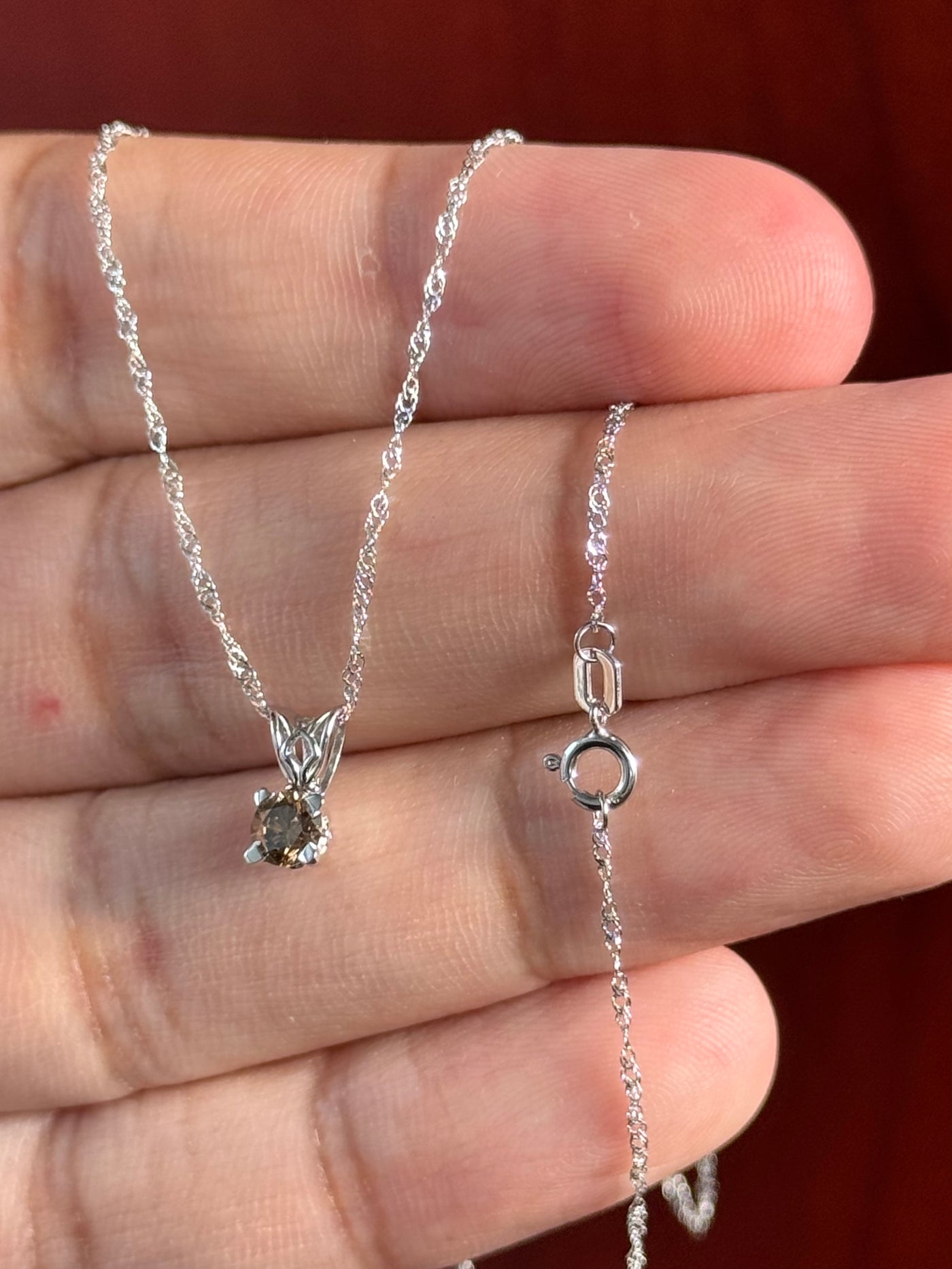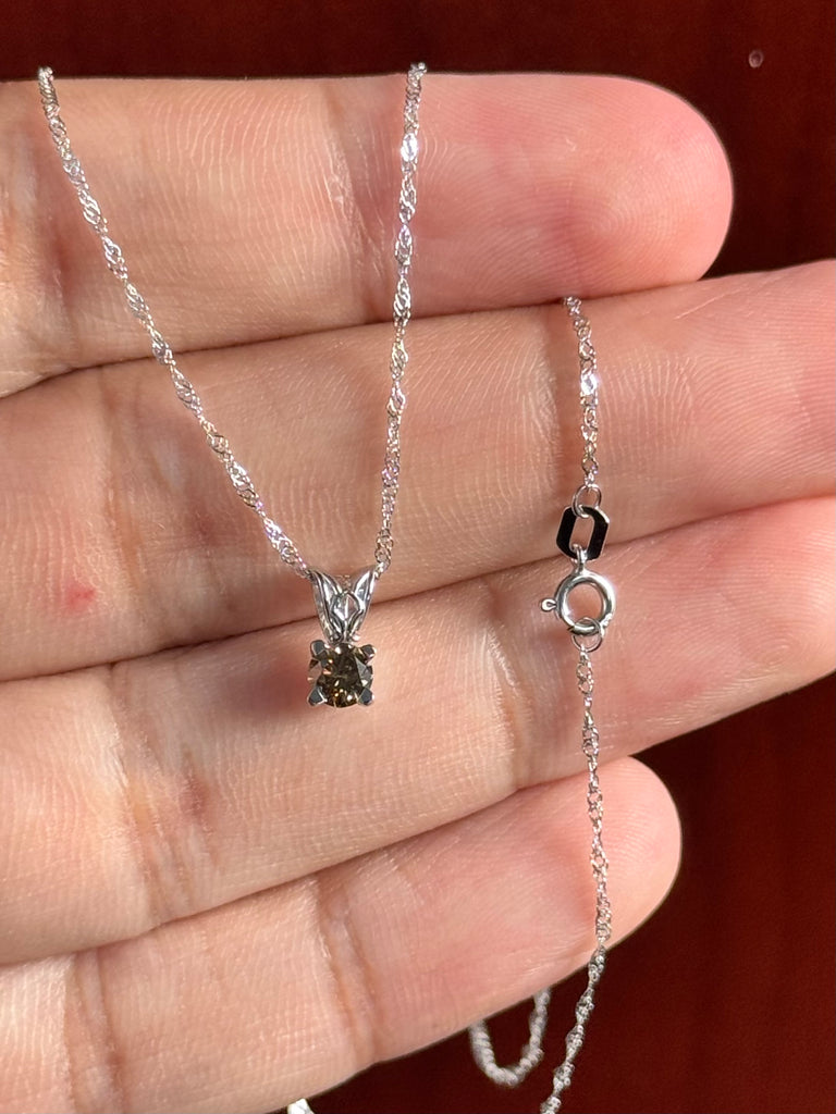 Brown Diamond Pendant – 0.31 Ct Round SI1 Fancy Dark Yellowish Brown Solitaire in Platinum with 18” White Gold Chain