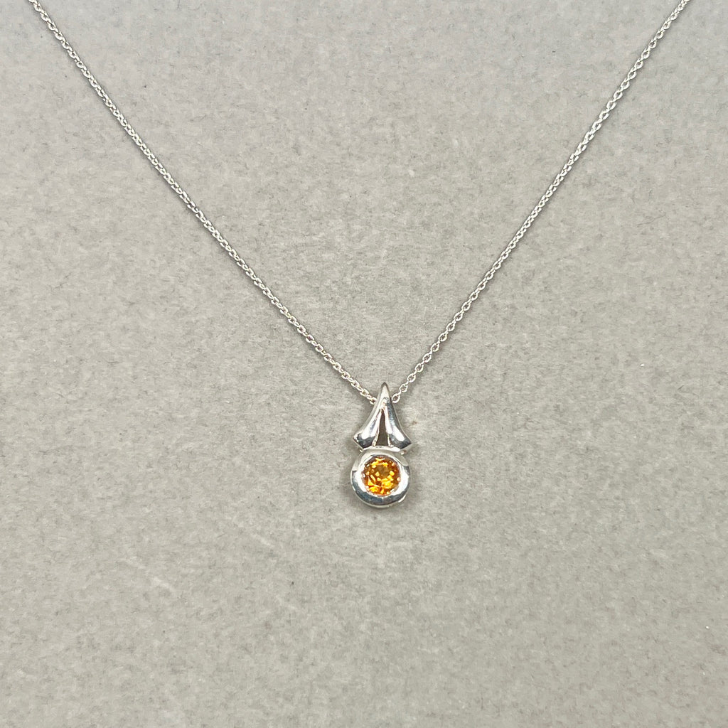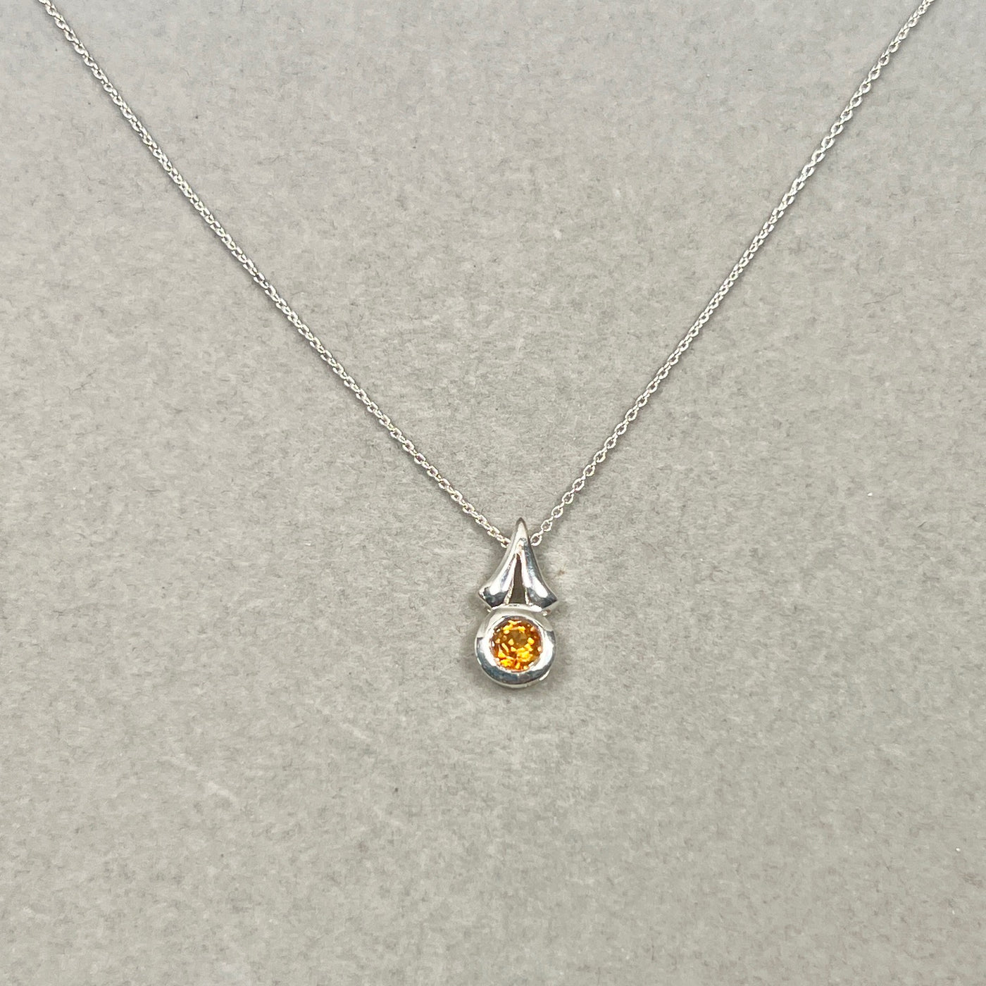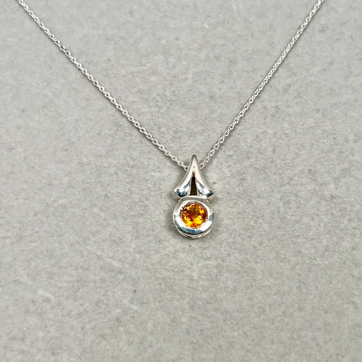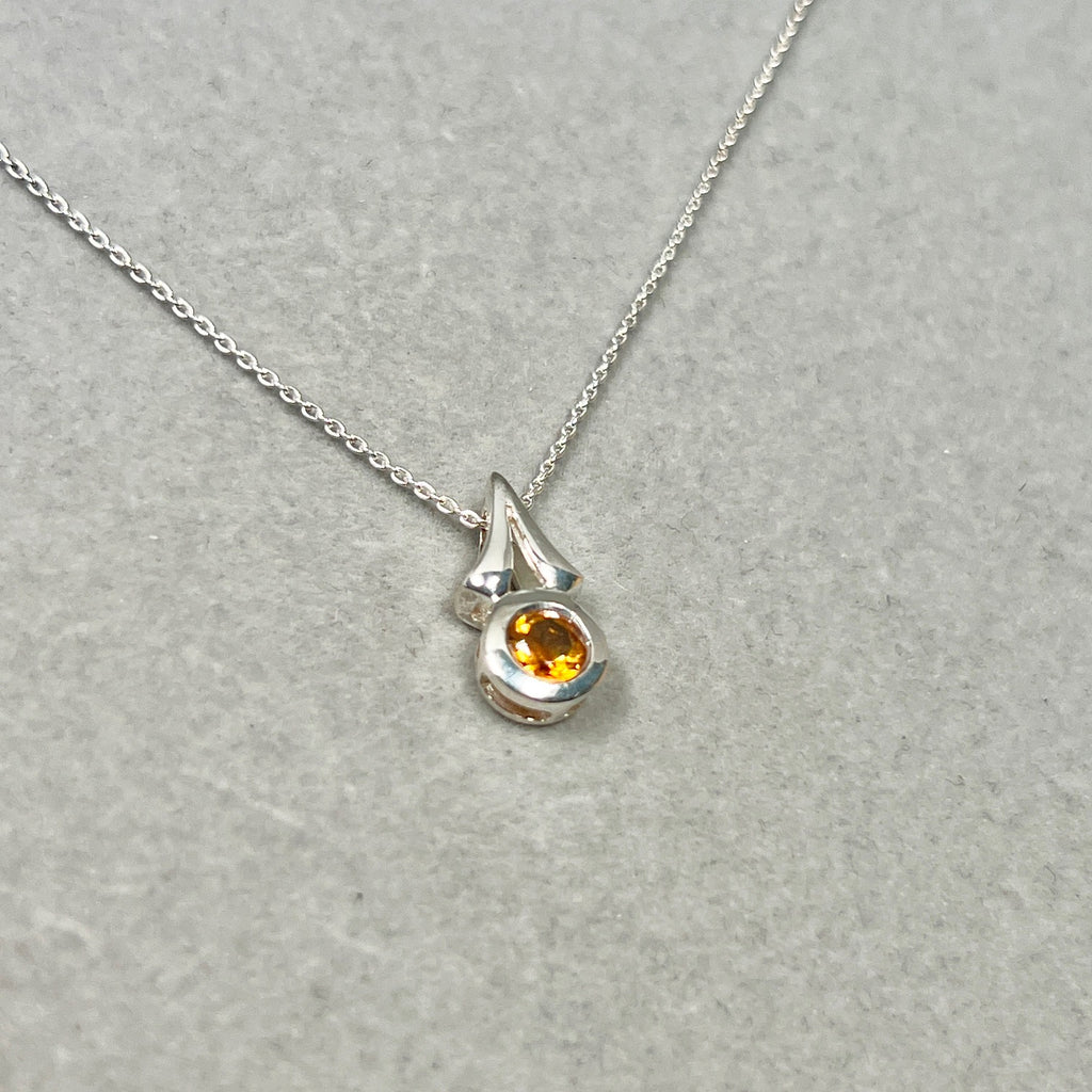 Citrine Drop Pendant Necklace | Sterling Silver Circle Design — November Birthstone Gift for Her