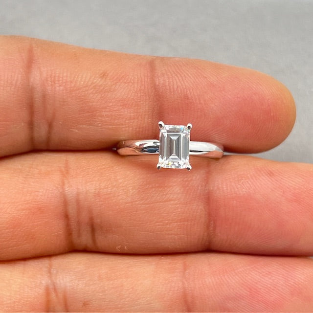 This **Cubic Zirconia Solitaire Ring in 14K White Gold** is the perfect blend of timeless elegance and modern sophistication. Featuring a **1.00 Carat Emerald Ideal Cut Cubic Zirconia** prong set in solid 14K white gold, this solitaire ring radiates brilliance and clarity similar to a natural diamond—at an affordable price. Whether worn as an **engagement ring, promise ring, or special anniversary gift**, this stunning piece of fine jewelry is designed to last and impress.