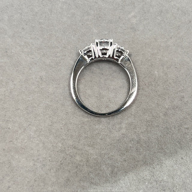 Cubic Zirconia Three Stone Ring in 14K White Gold – Round Solitaire Wedding Ring, Engagement Jewelry, Anniversary Gift for Her