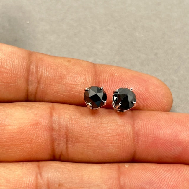 EGL USA Certified 3 Ct Round Rose Cut Black Diamond Stud Earrings 14K White Gold | AAA Quality Real Diamond Jewelry for Women