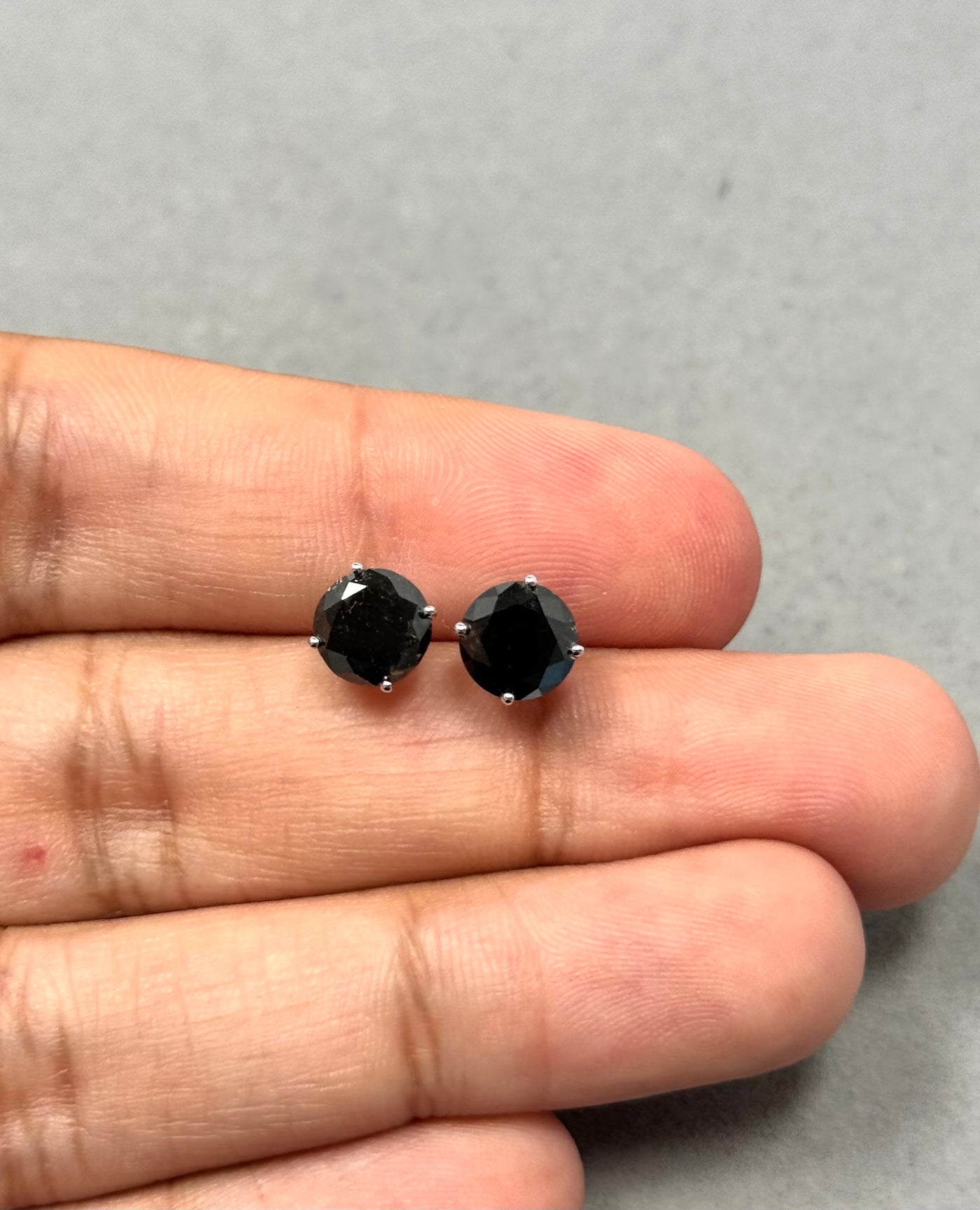 GL USA Certified Black Diamond Stud Earrings • 3.10 Ct Round Black Diamond Earrings in 18K White Gold • Fine Luxury Jewelry Gift