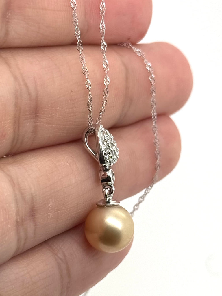 Golden South Sea Pearl Pendant | 14K White Gold Diamond Necklace — Luxury Bridal Gift for Her