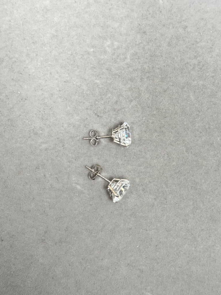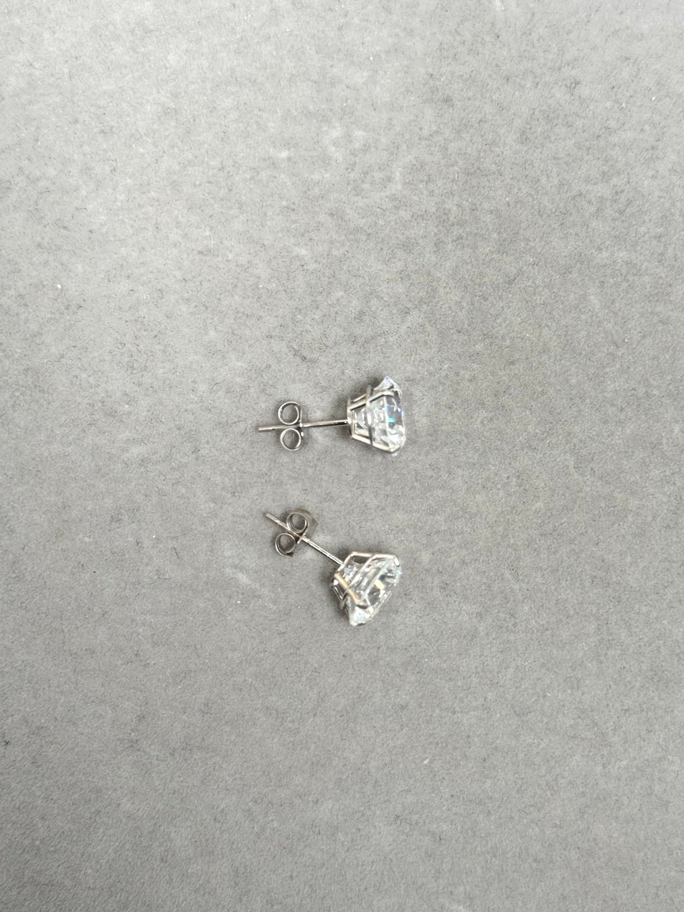 These 8 mm Cubic Zirconia Stud Earrings in 10K White Gold feature Hearts & Arrows Ideal Cut round CZ stones, hand-selected for maximum brilliance and symmetry. Each stone is prong set in solid 10K white gold, creating a sparkling diamond alternative equivalent to approximately 4 carats of natural white diamonds. The classic round design combines elegance and sophistication, making these studs perfect for women who love refined, timeless jewelry.