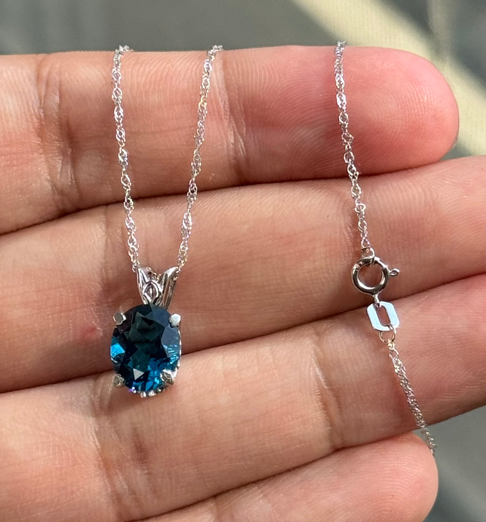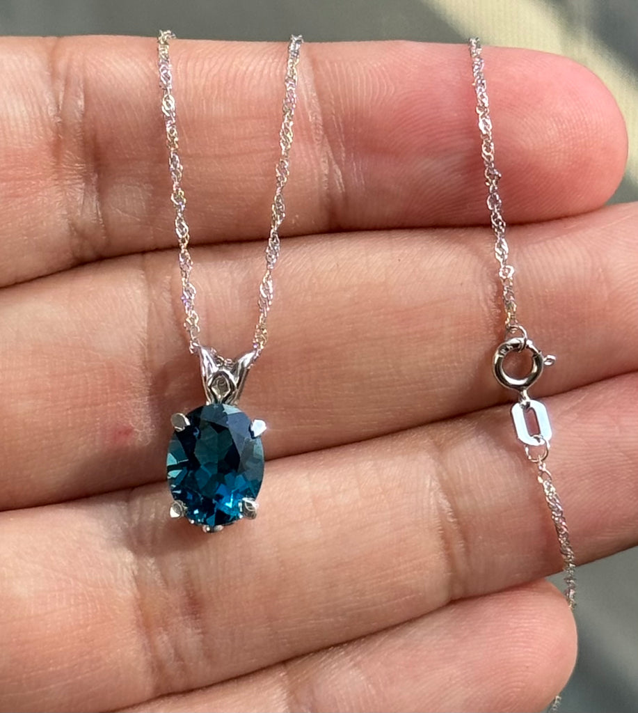 London Blue Topaz Pendant | Platinum Oval Solitaire Necklace | December Birthstone Jewelry Gift