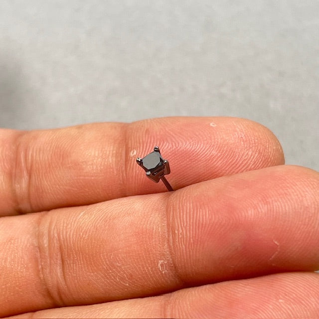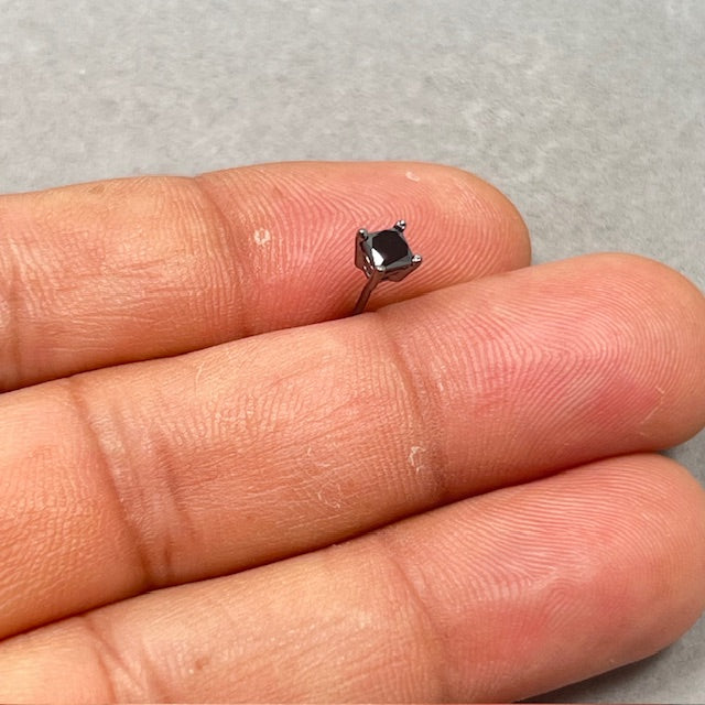 Men’s Princess Cut Black Diamond Stud Earring 0.38 Ct | AAA Solitaire in 14K Blackened White Gold