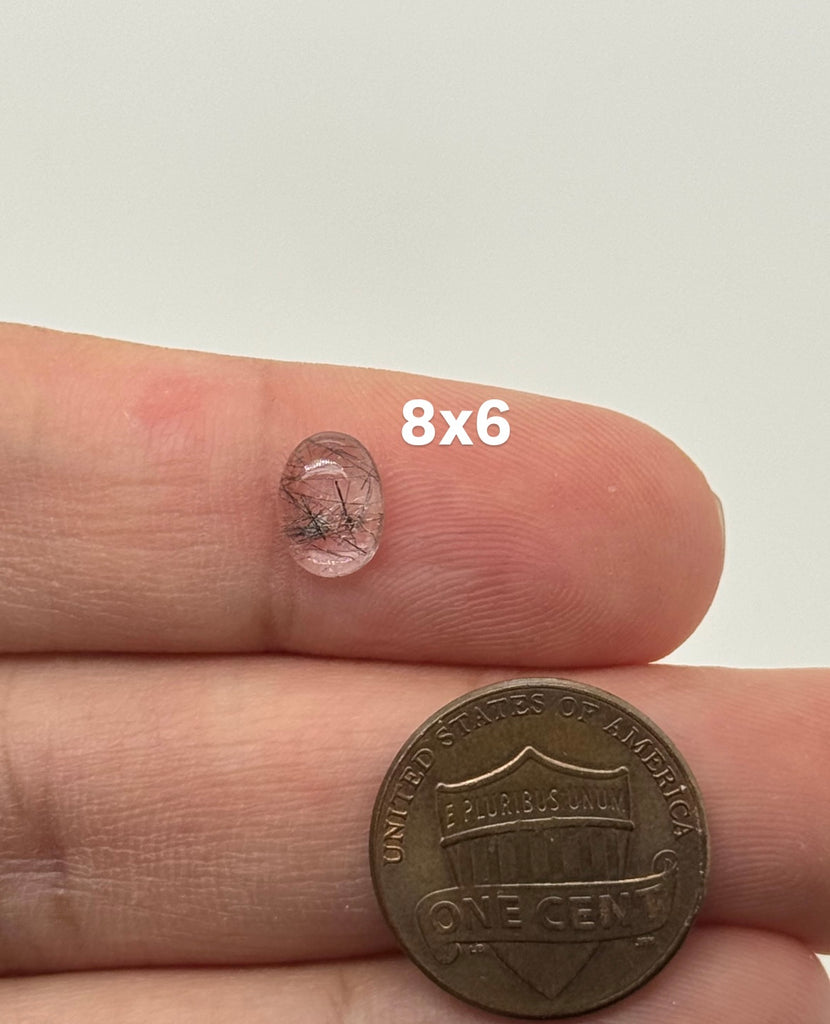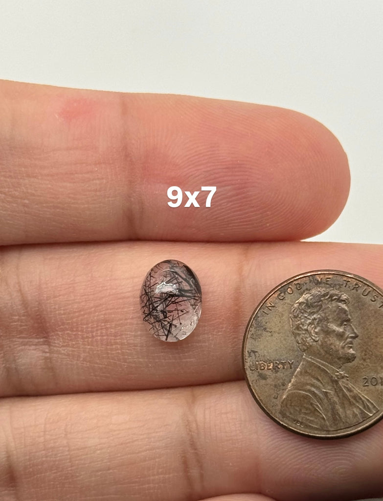 Natural Black Rutilated Quartz oval cabochons 8x6–14x10mm. AAA polished loose gemstones for rings, pendants, wire wrapping & jewelry making.