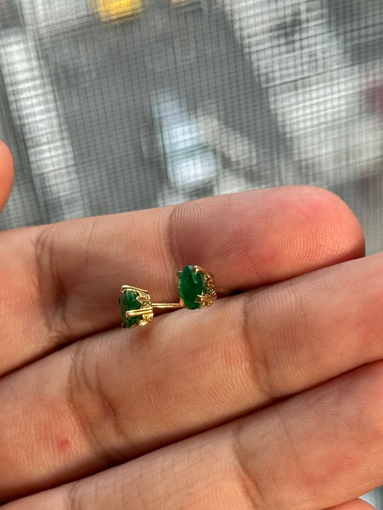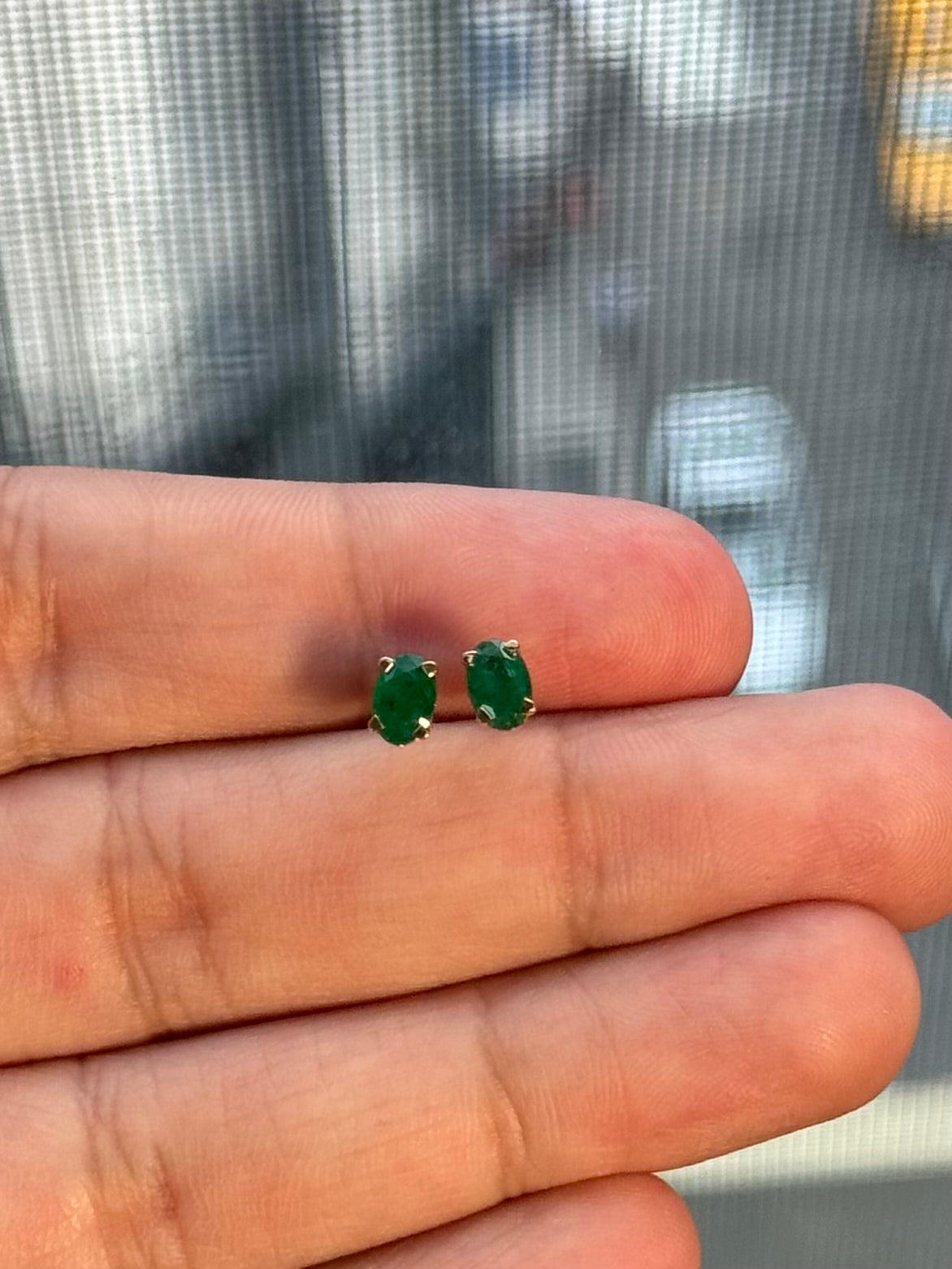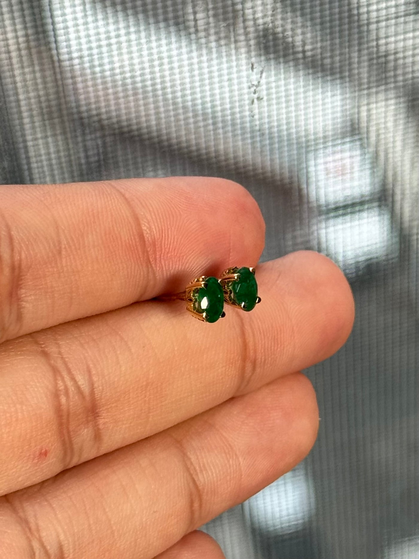 Natural Emerald Stud Earrings 6x4mm Oval AA Quality in 18K Yellow Gold – 0.60 to 1.12 Carats – Scroll Design, Classic May Birthstone Jewelry