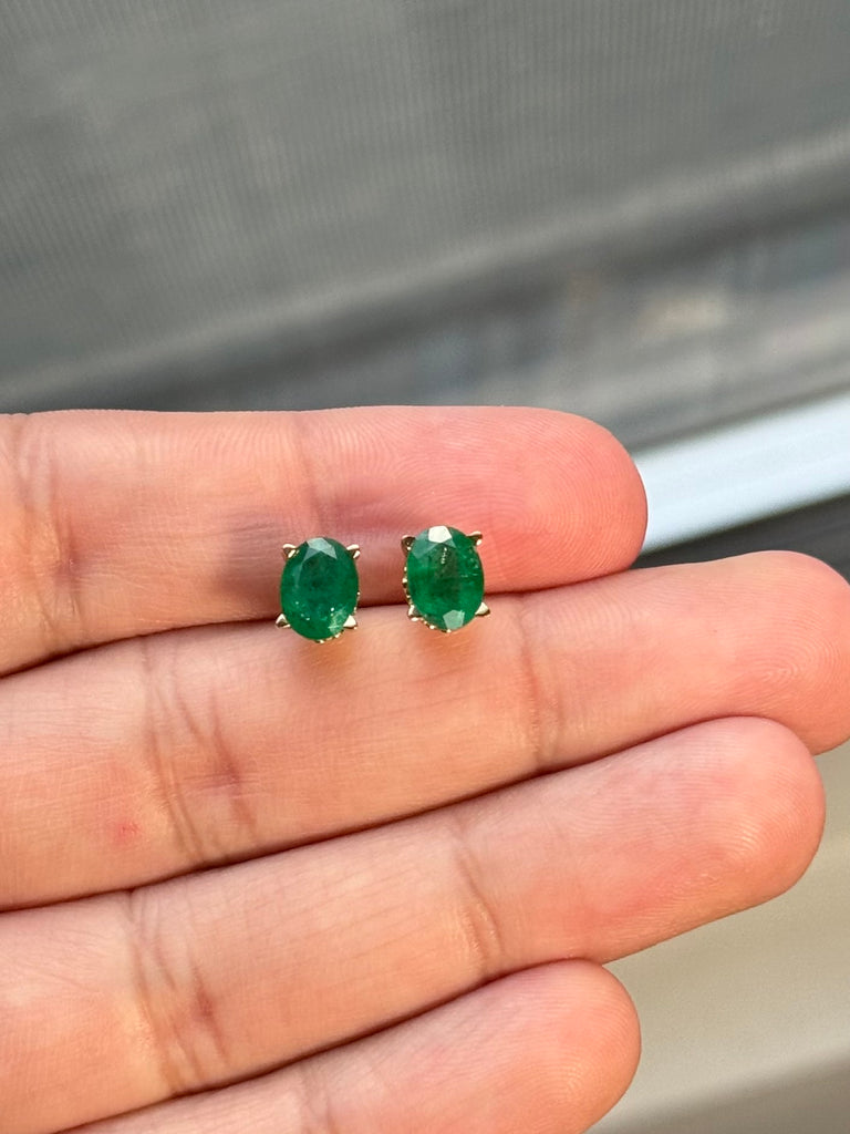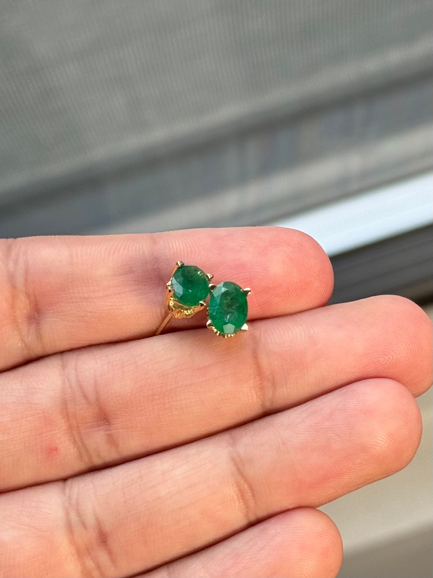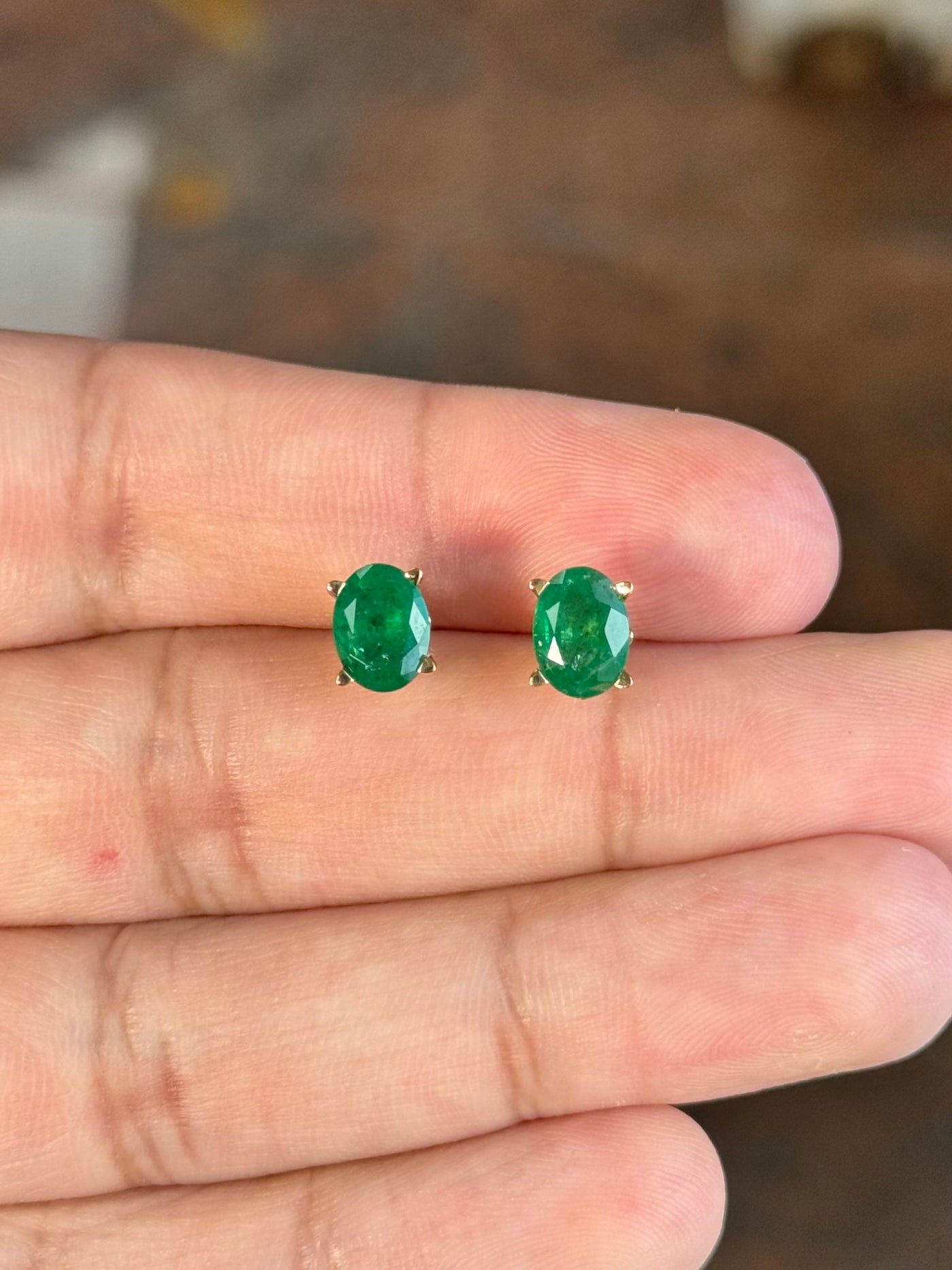 Natural Emerald Stud Earrings 8x6mm Oval | 1.82-2.55 CT AA Grade | 18K Yellow Gold Scroll Design | May Birthstone Jewelry Gif