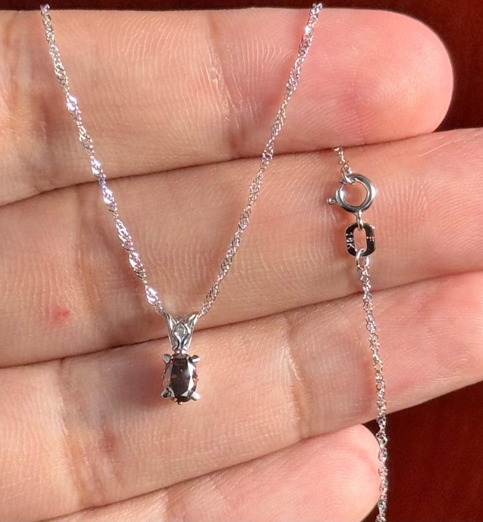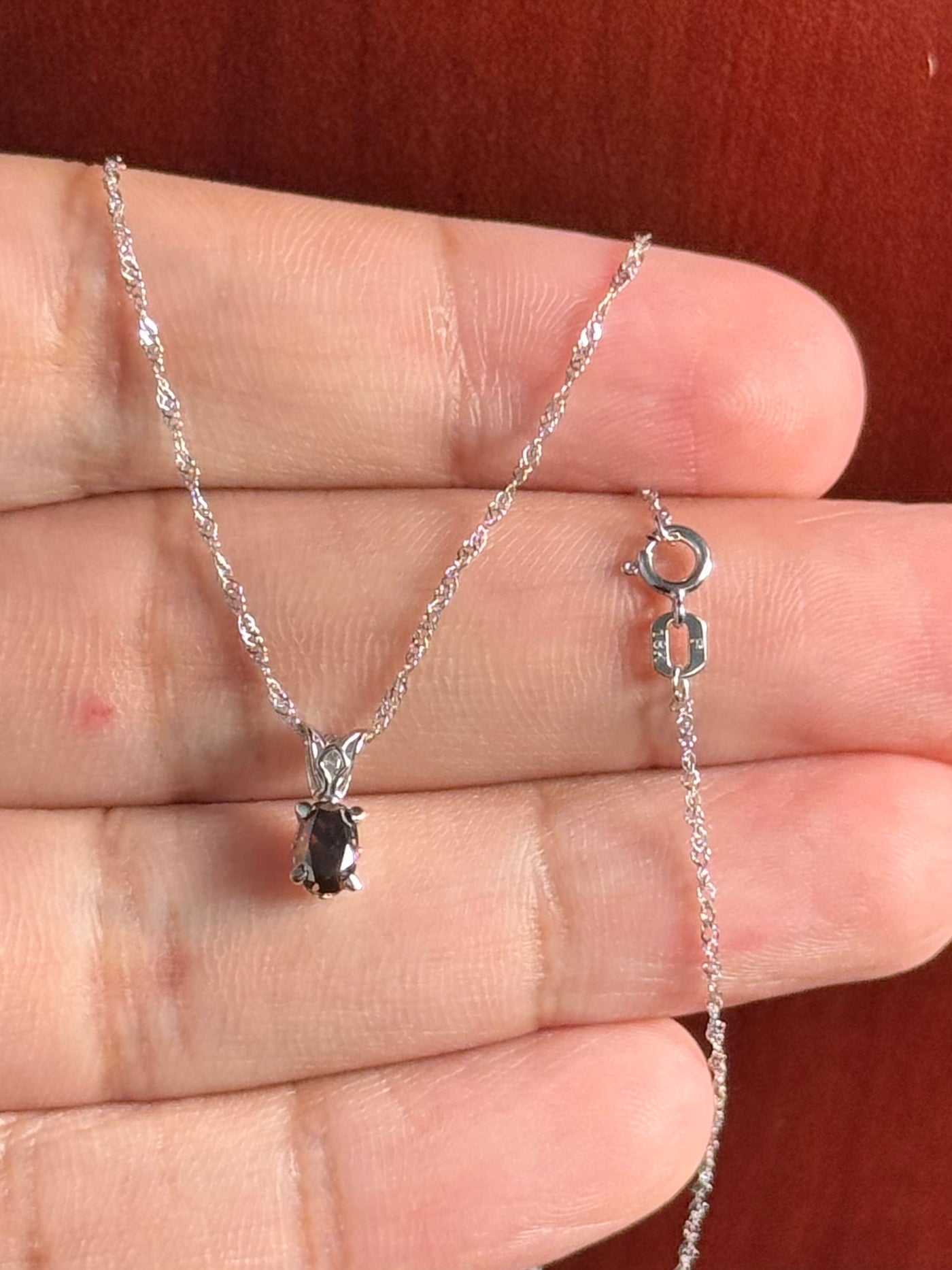 Natural Fancy Dark Orangey Brown Diamond Necklace 0.38 Ct SI1 Oval 5.5x3.6 mm, Platinum Scroll Solitaire, 18" 18K White Gold Singapore Chain