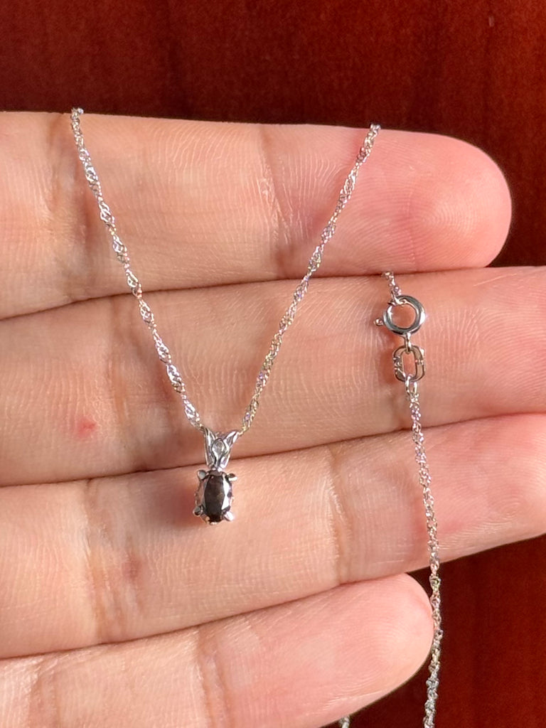 Add warmth and rarity to your jewelry collection with this elegant Natural Fancy Dark Orangey Brown Diamond pendant. The centerpiece is an SI1‑clarity oval brilliant diamond (~5.5 × 3.6 × 2.7 mm; approx. 0.38 carats) with a captivating deep golden‑cognac tone. The diamond’s brilliance is enhanced by precise cutting, balancing rich color with sparkling life.