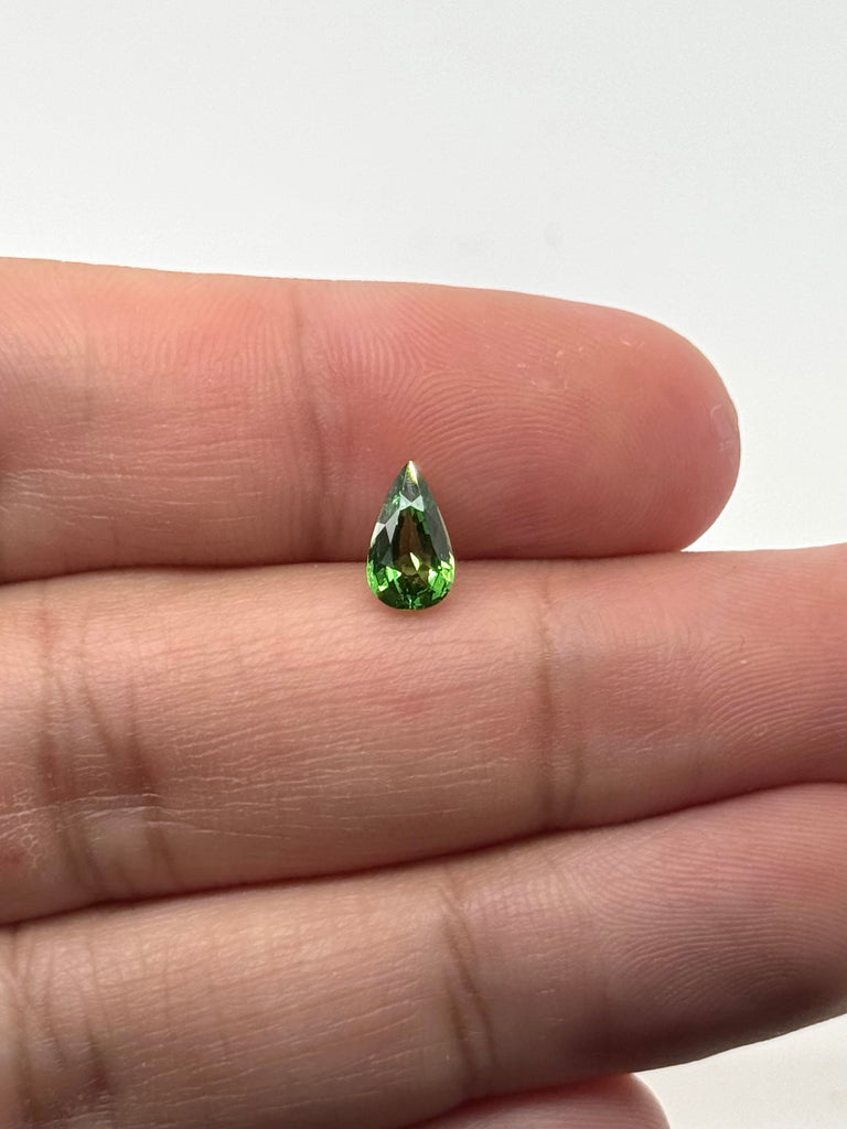 Discover the vivid brilliance of this Natural Tsavorite Garnet Pear Shape, weighing 1.00 carat and measuring 9 x 5 x 2 mm. This elegant pear-cut green garnet features a bright, lively green tone with excellent sparkle, making it an exceptional choice for fine custom jewelry.