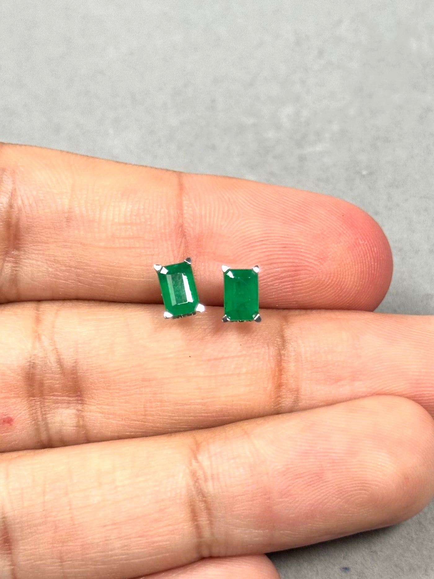 Platinum Emerald Stud Earrings – 0.98-1.07 Ct 6x4mm AA Emerald-Cut Natural Green Scroll Earrings – Genuine May Birthstone Jewelry Gift